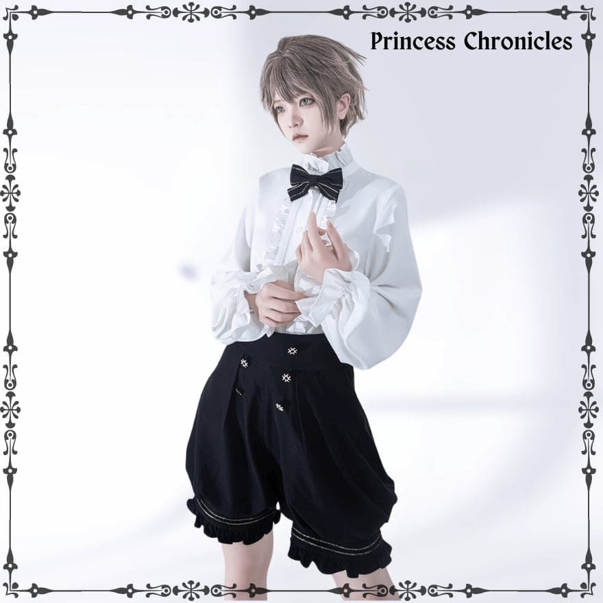 フリルやレースのトップスと組み合わせることで、ゴスロリ要素を取り入れた華やかな王子系(皇子系)コーデが楽しめます。