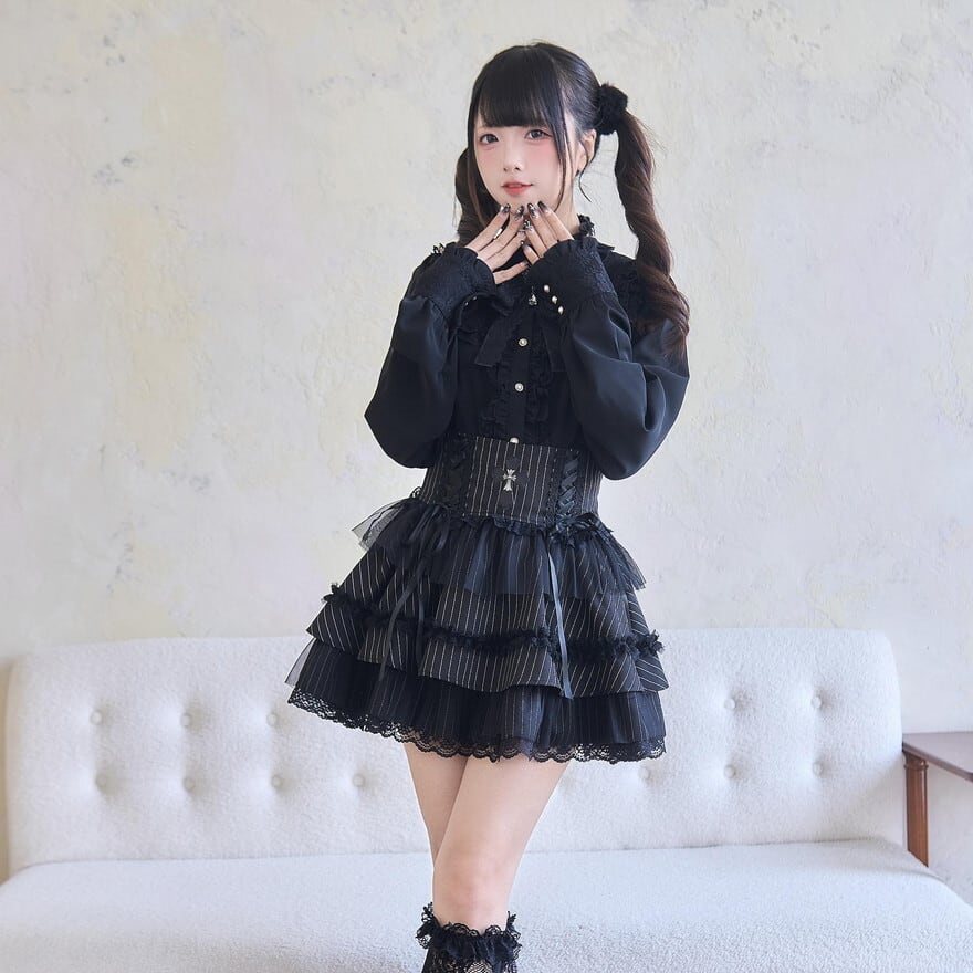 エレガントなウエストレースアップにクロス十字架が病み可愛い地雷系フリルスカートです。