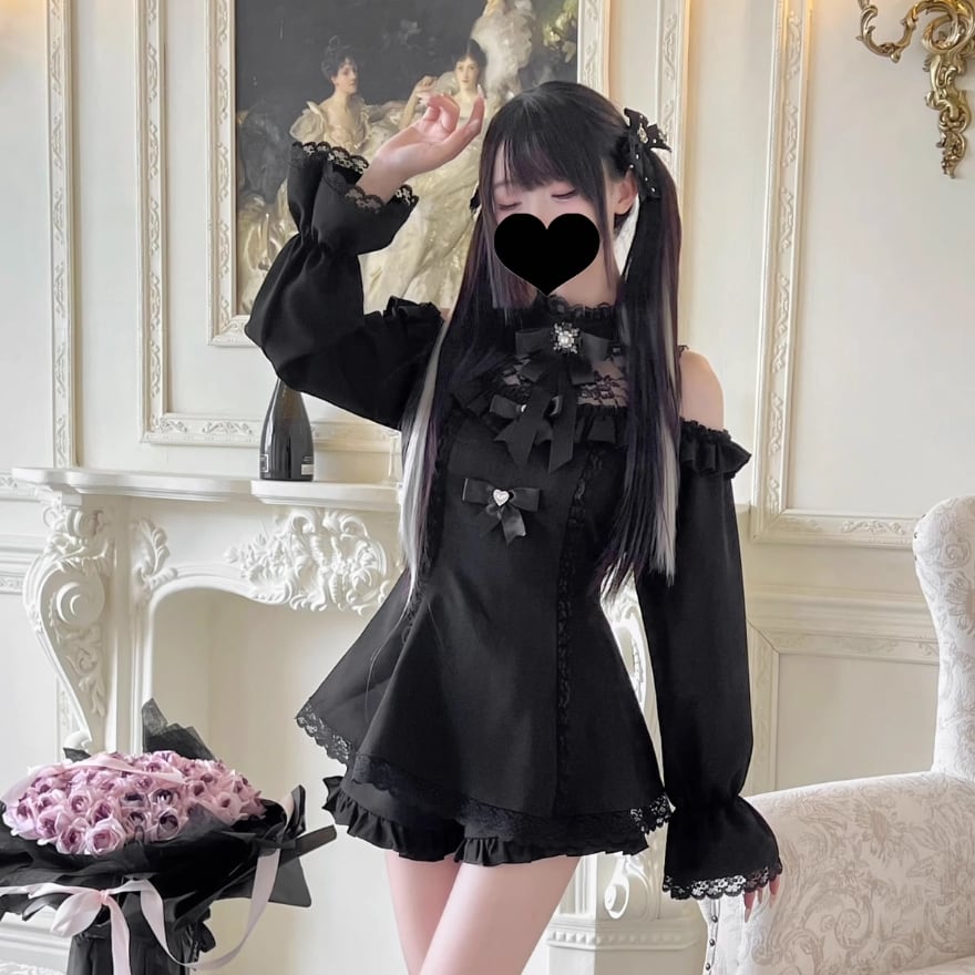 ゴスロリ通販 With U ゴスロリセットアップ 幻夜 NoGenki オフショルワンピ ハーフパンツ 双子コーデ Y2K 地雷コーデ