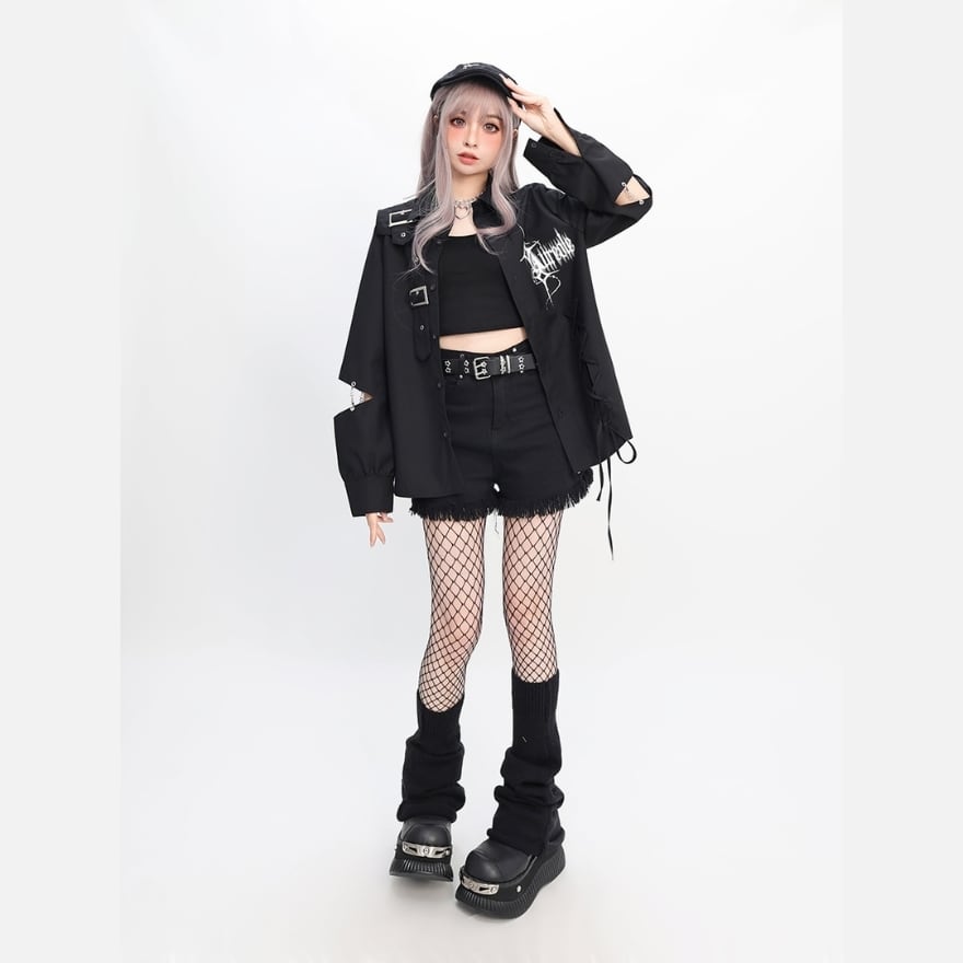 ゴスロリ通販 With U パンク 長袖シャツ ストリートファッション ゴシック ダークファッション 病みかわいい 原宿系