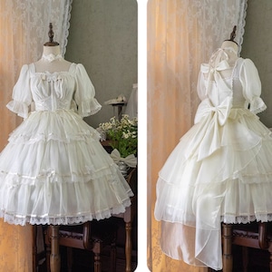 ブラックとホワイトの2色展開で、どちらも繊細なレースが襟元、袖、裾にあしらわれた、クラシカルロリータのワンピースです。
