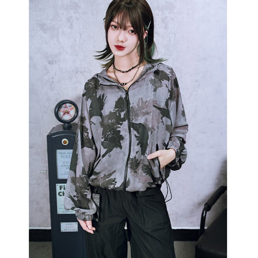 関連キーワード: #サブカル #地雷系 #古怪舎 #ジャケット #羽織り #鴉 #カラス #総柄 #薄手 #日焼け防止 #ユニセックス #病みかわいい #モード #ストリート