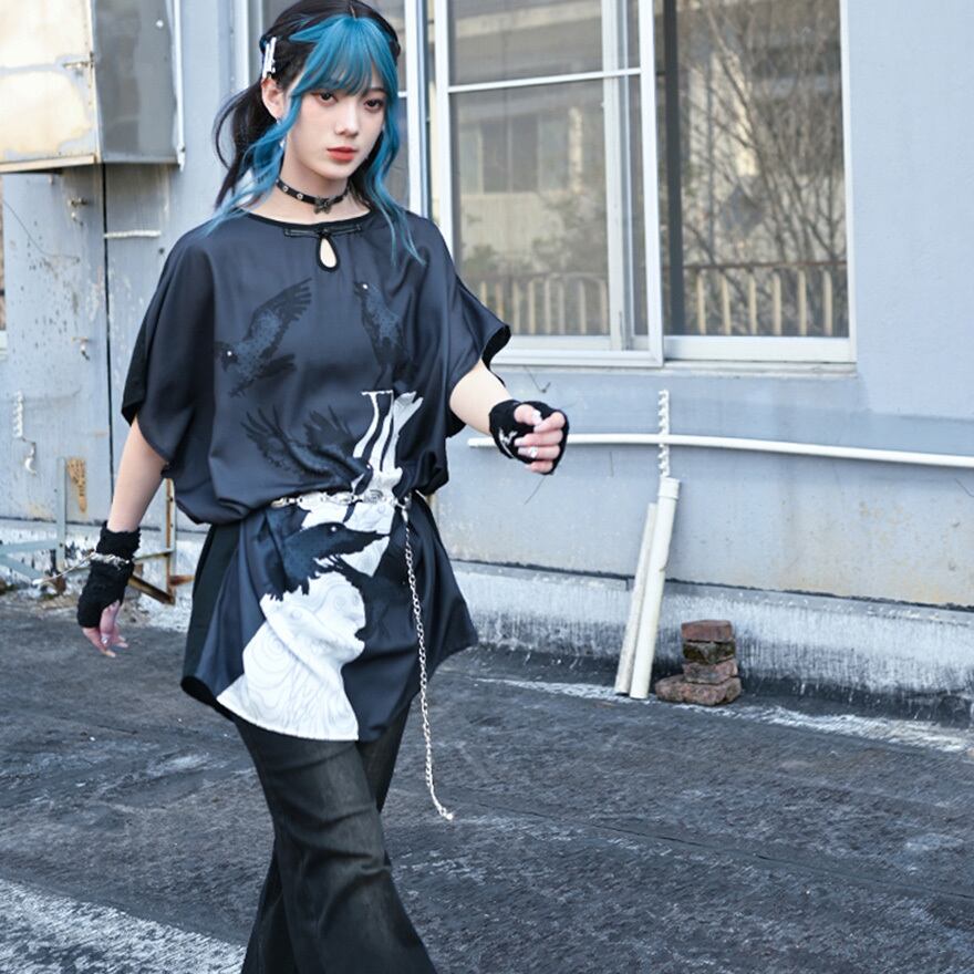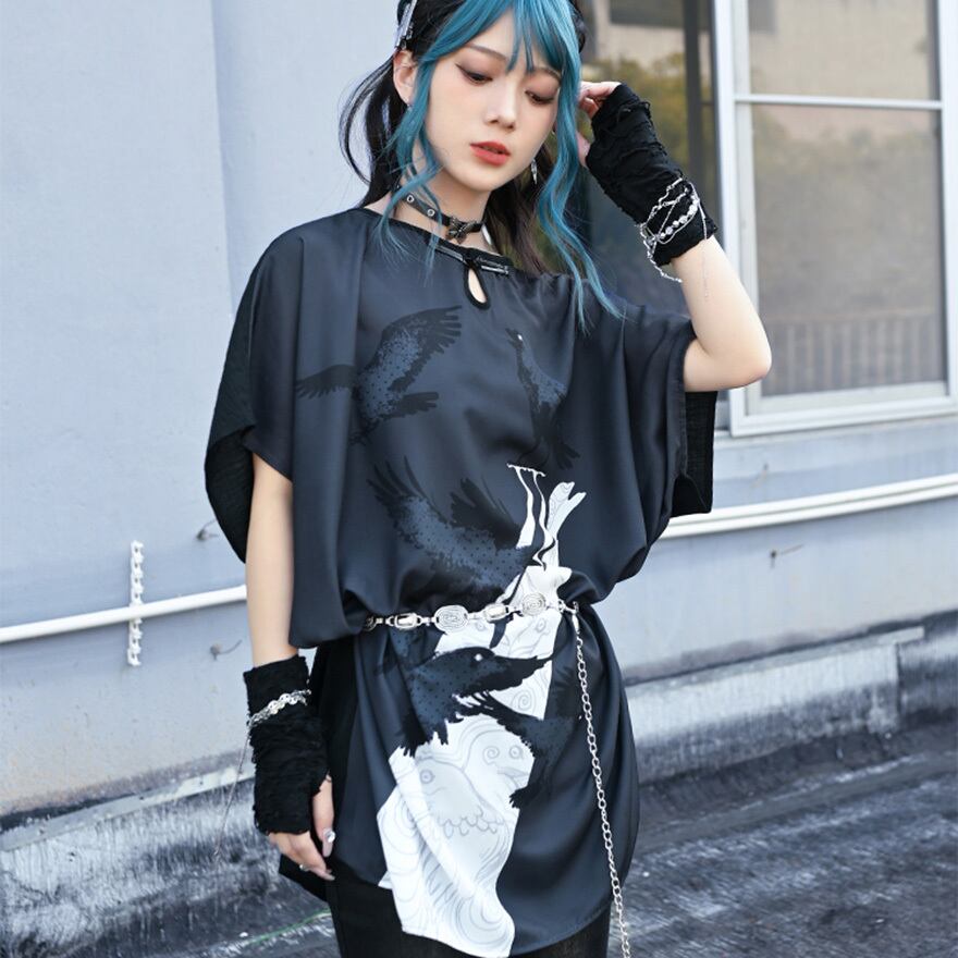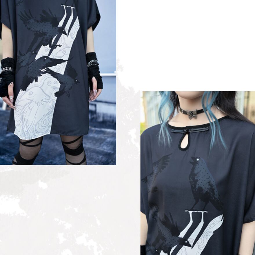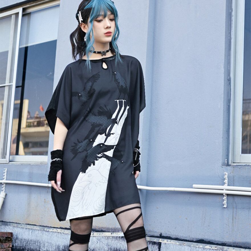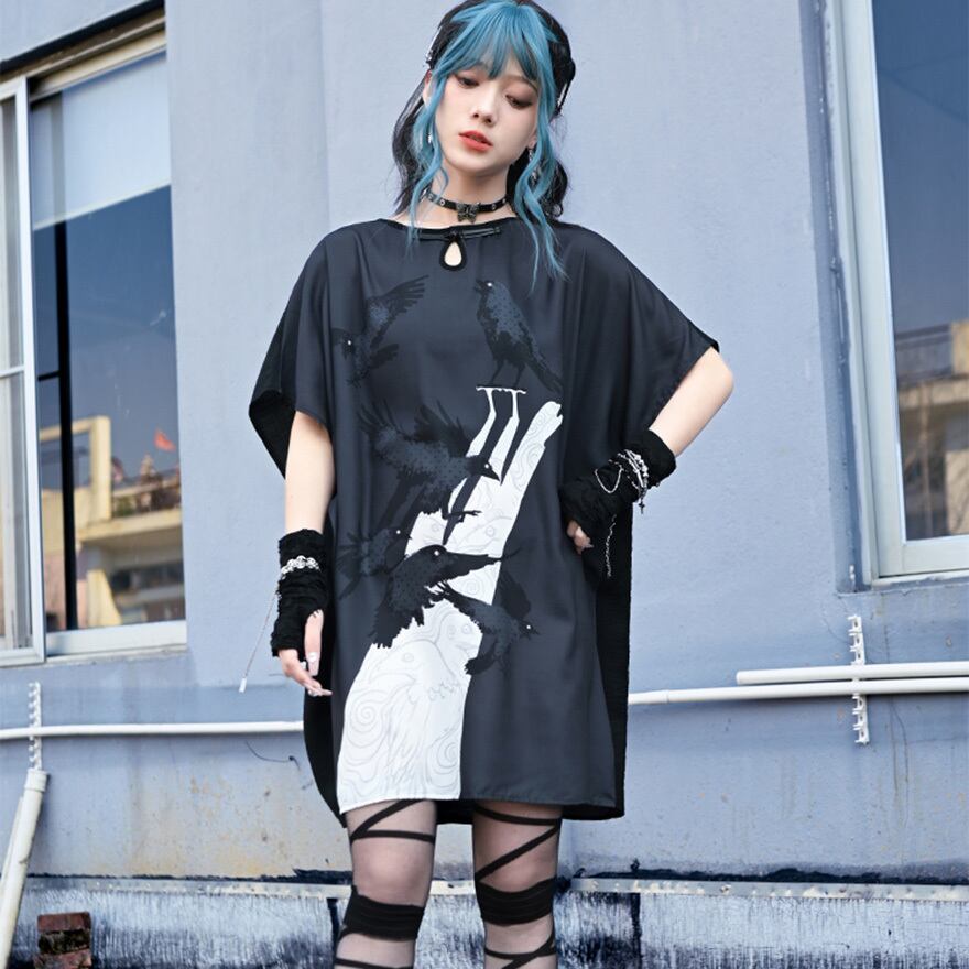 関連キーワード: #サブカル #地雷系 #古怪舎 #ワンピース #ロングTシャツ #シャツワンピース #鴉 #カラス #プリント #チャイナ風 #中華風 #ゆったり #病みかわいい #モード #ストリート