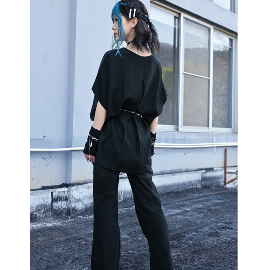 一枚でワンピースとして、またはパンツと合わせてロングトップスとして、多様な着こなしが可能な、病みかわいくもモードな逸品です。