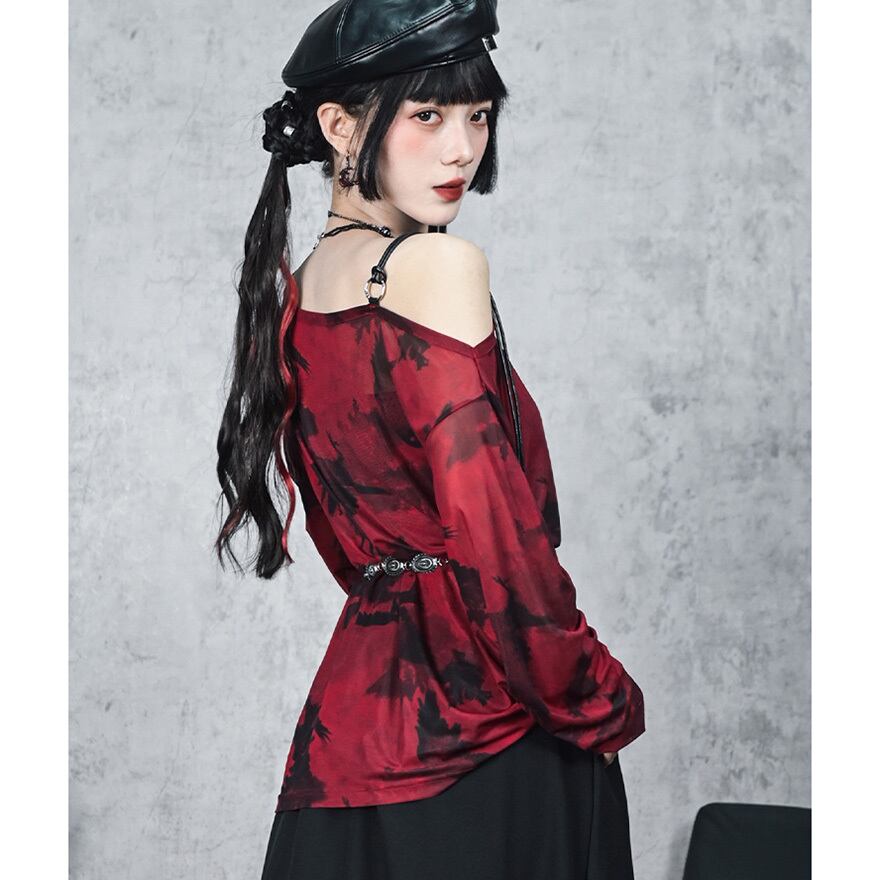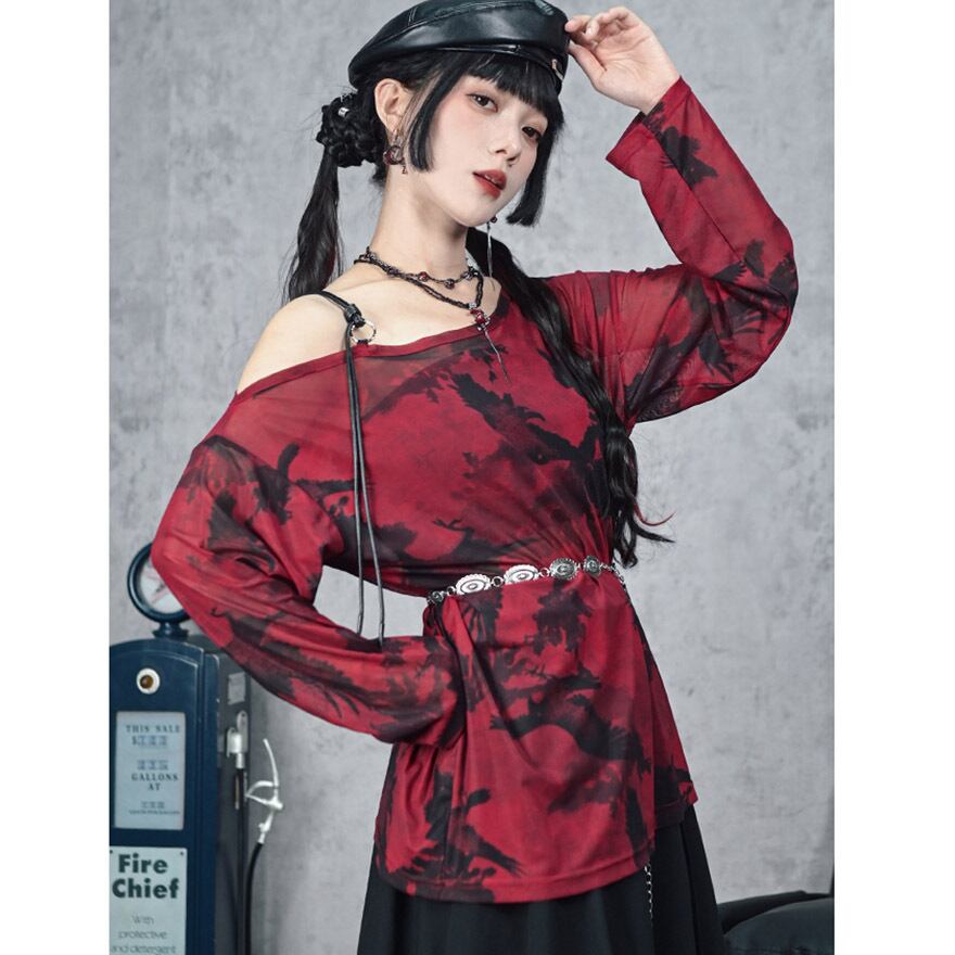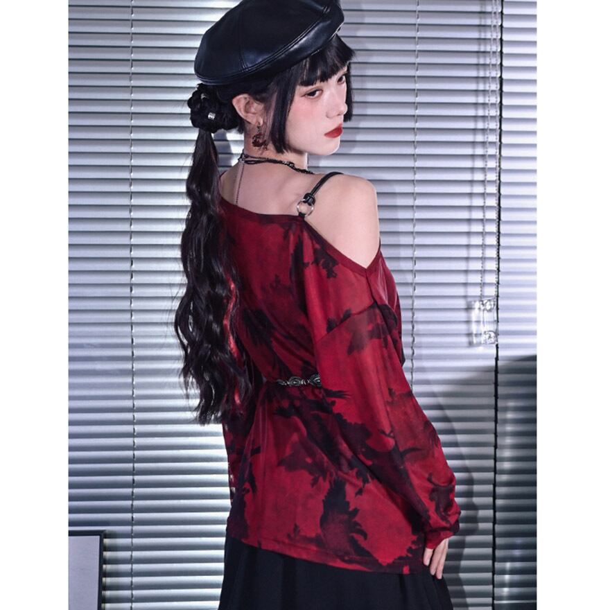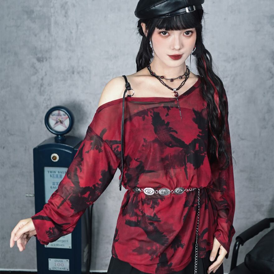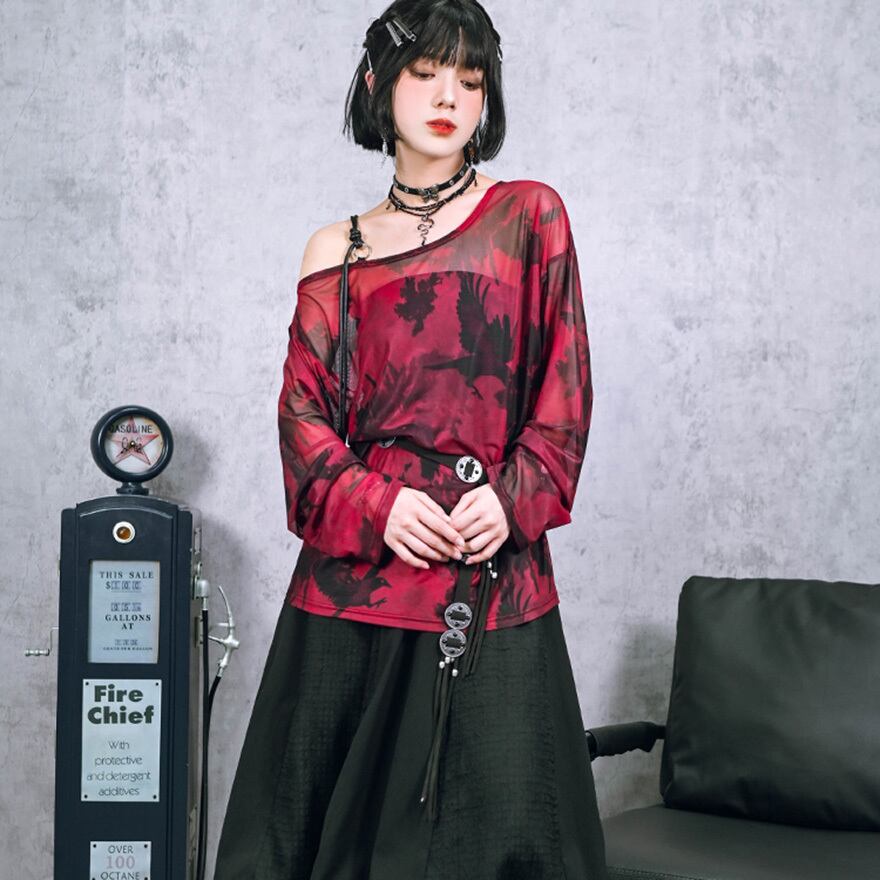 関連キーワード: #サブカル #地雷系 #古怪舎 #トップス #シャツ #オフショルダー #鴉 #カラス #プリント #レッド #病みかわいい #中華風 #和ゴス #モード #個性派