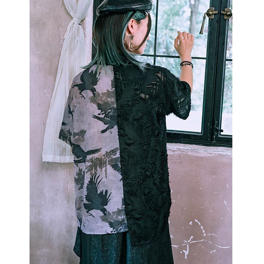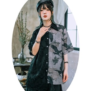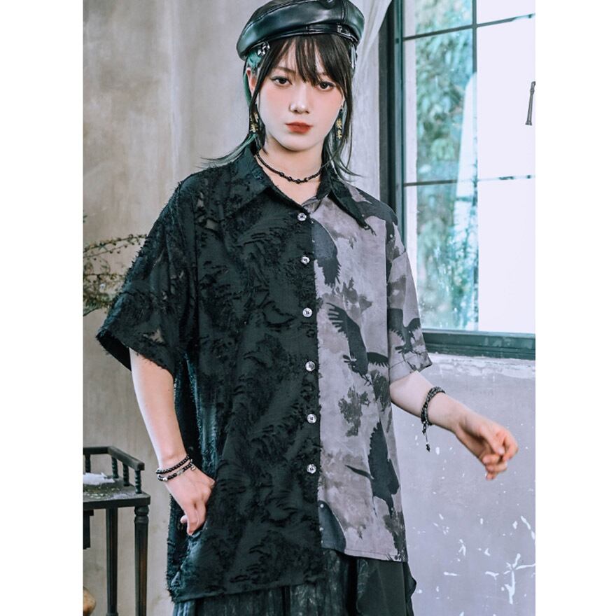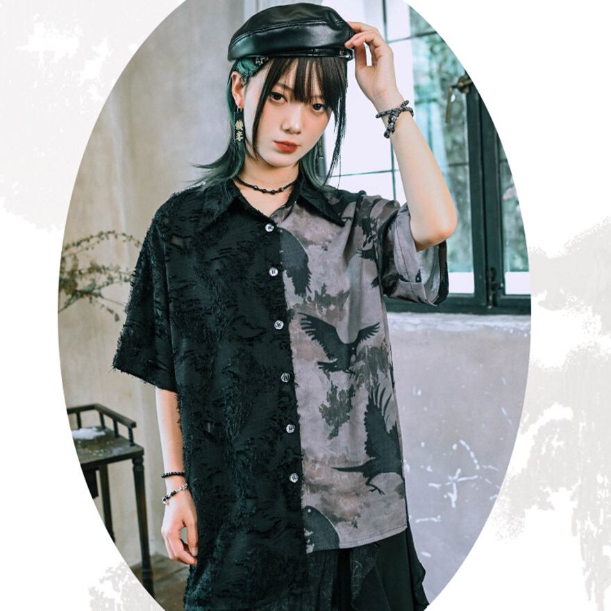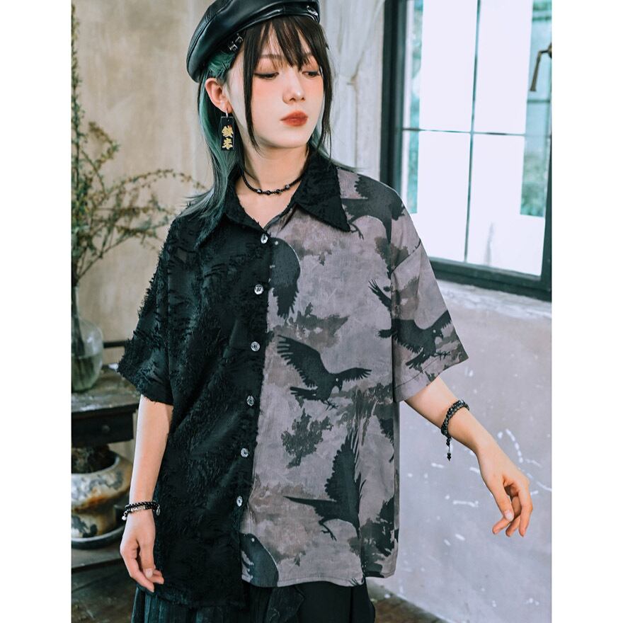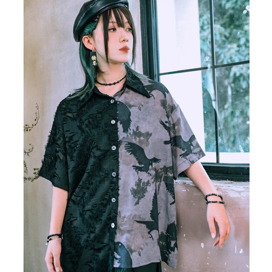 関連キーワード: #サブカル #地雷系 #古怪舎 #シャツ #半袖 #バイカラー #鴉 #カラス #プリント #ブラック #病みかわいい #中華風 #和ゴス #モード #個性派