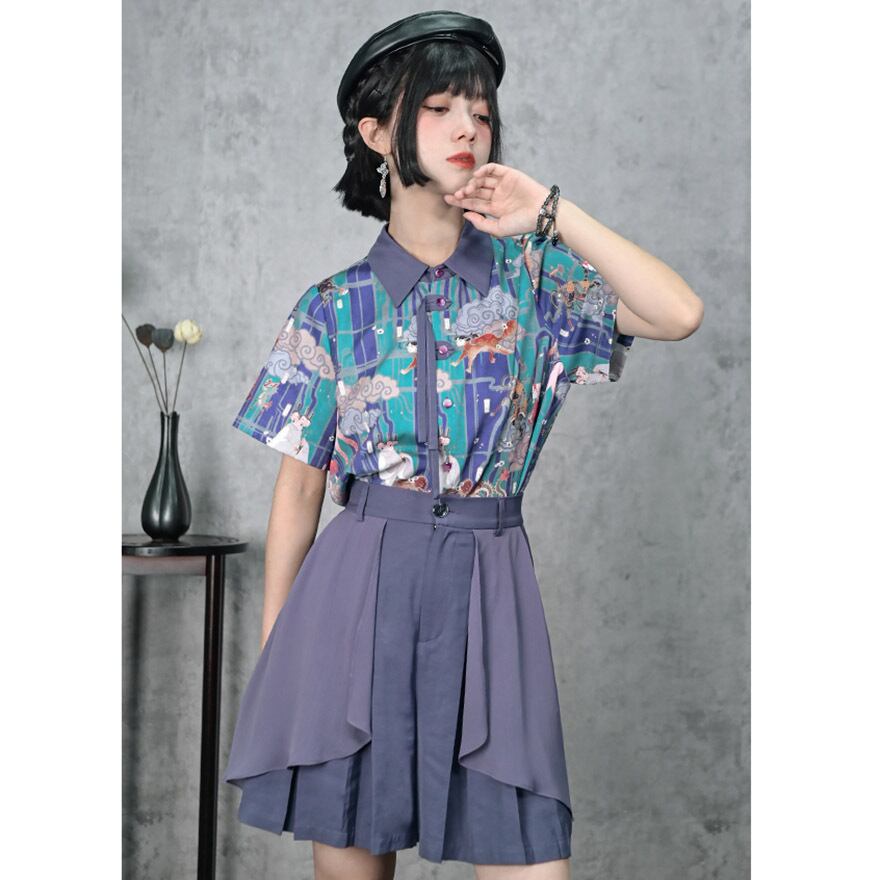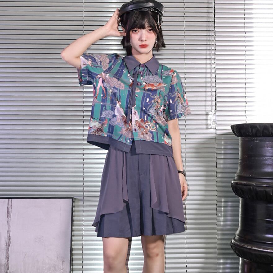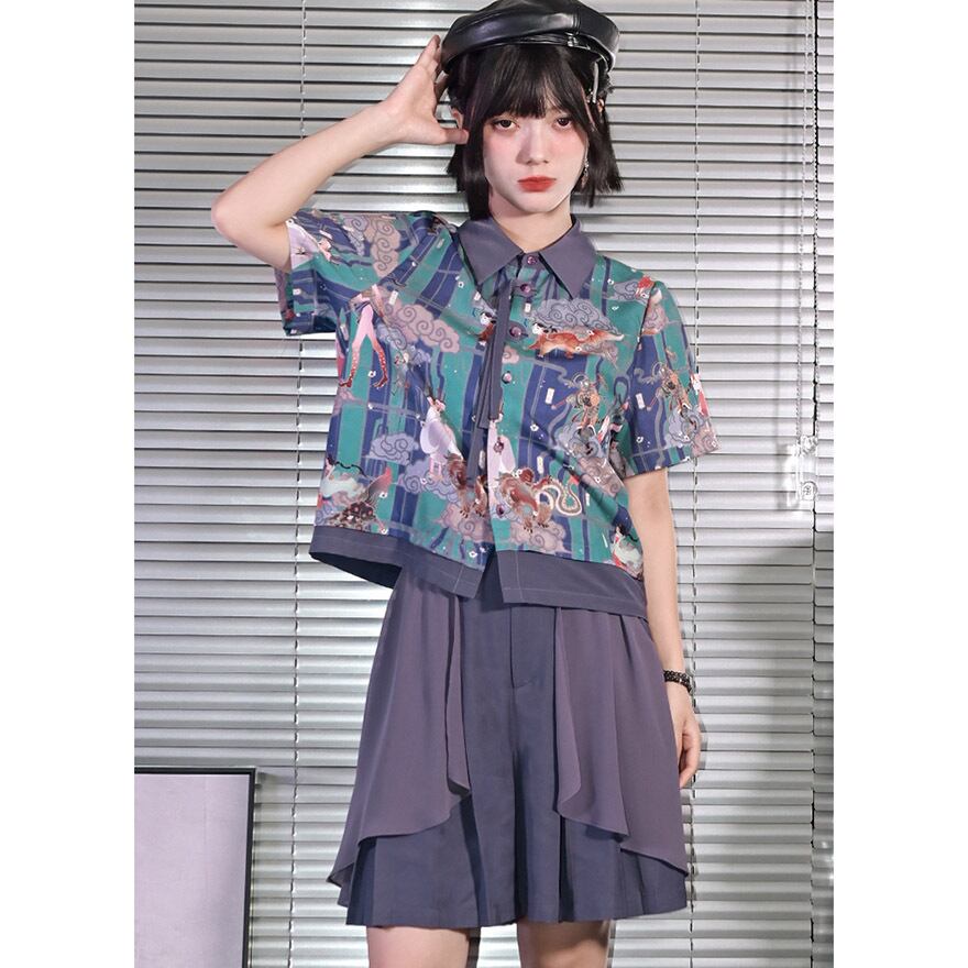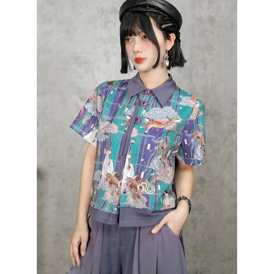 チャイナ風 中華服 古怪舎 半袖シャツ プリント柄 中華系ファッション 30代ファッション夏服