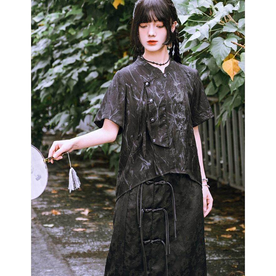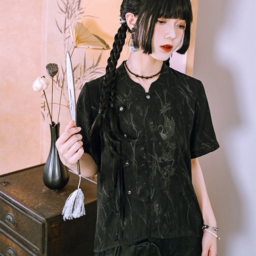 チャイナ風 中華服 古怪舎 半袖 シャツ 刺繍 中華ボタン 中華系ファッション 30代ファッション夏服