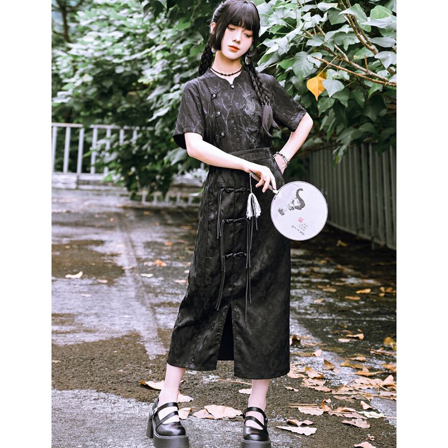 中華ゴシック 中華服 古怪舎 スカート ジャガード風 中華系ファッション 30代ファッション 夏服