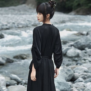 関連キーワード: #チャイナ風 #中華服 #ワンピース #ロングワンピース #ブラック #黒 #ラグランスリーブ #大青龍肆 #モード #ミニマル #サブカル #個性的 #夏服 #Aライン #バンドカラー #20代ファッション #30代ファッション