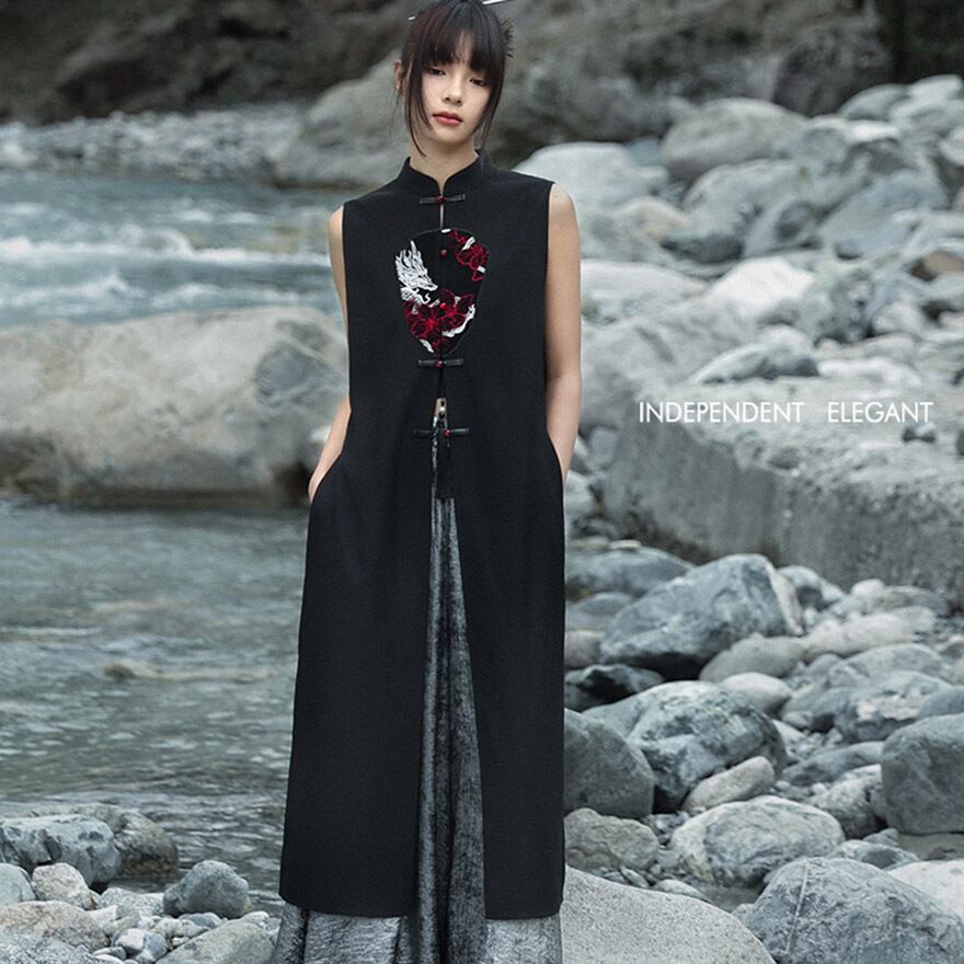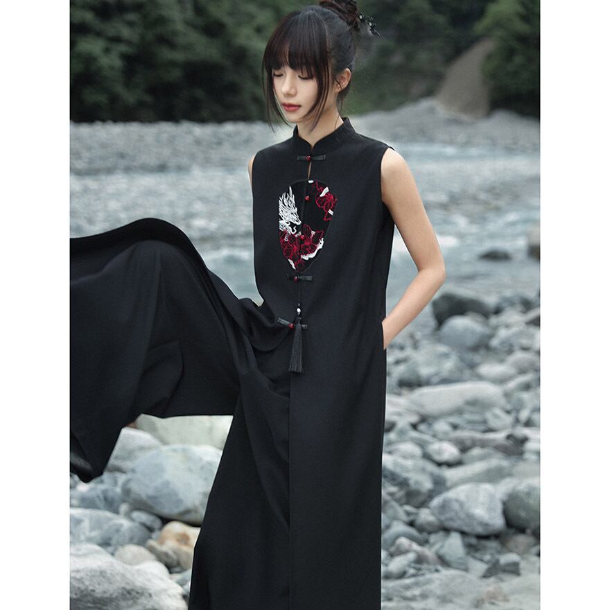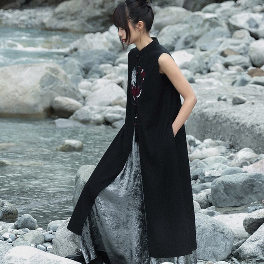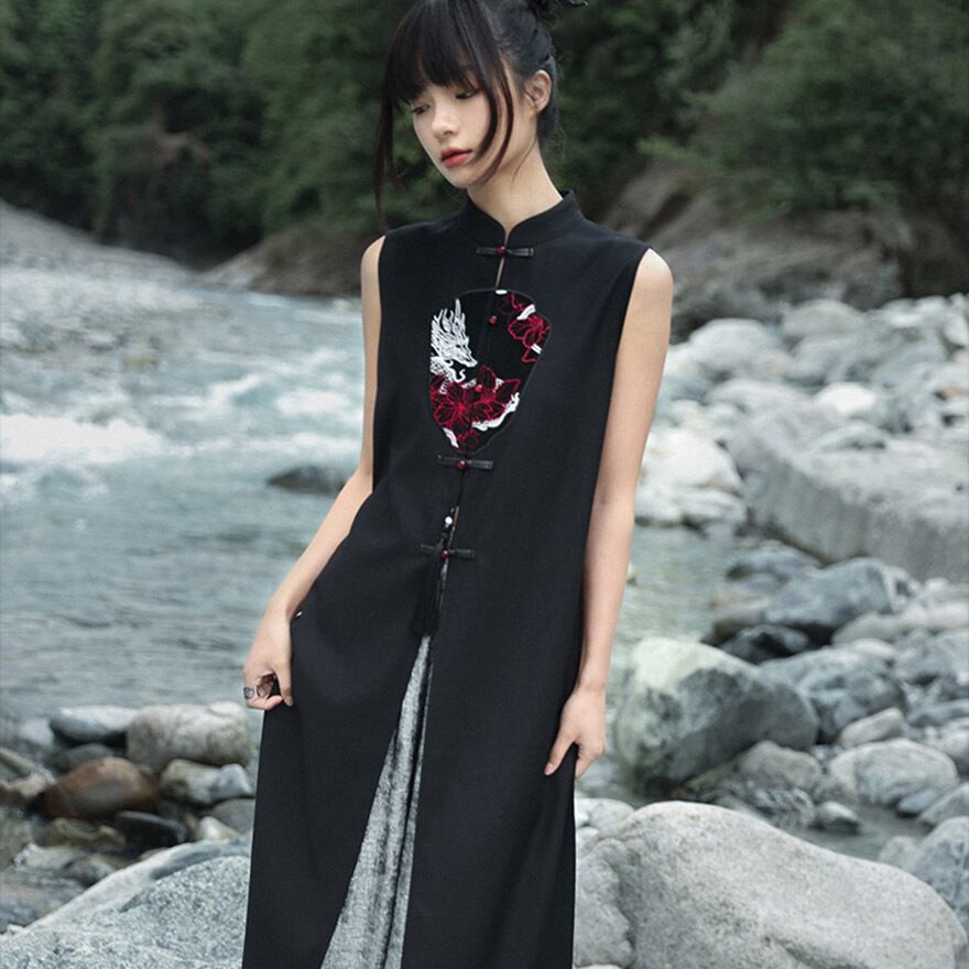 関連キーワード: #チャイナ風 #中華服 #ベスト #ジレ #ロングベスト #ドラゴン #龍 #刺繍 #レザー調 #大青龍肆 #ブラック #黒 #サブカル #個性的 #モード #ゴシック #夏服 #レイヤード #トップス #20代ファッション #30代ファッション #イベント #ライブ
