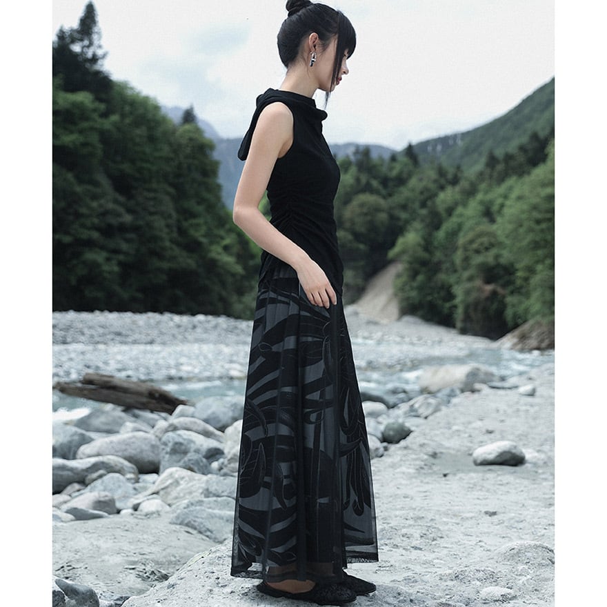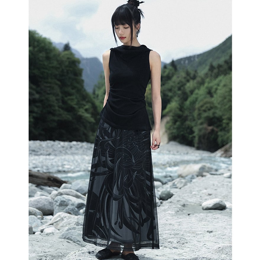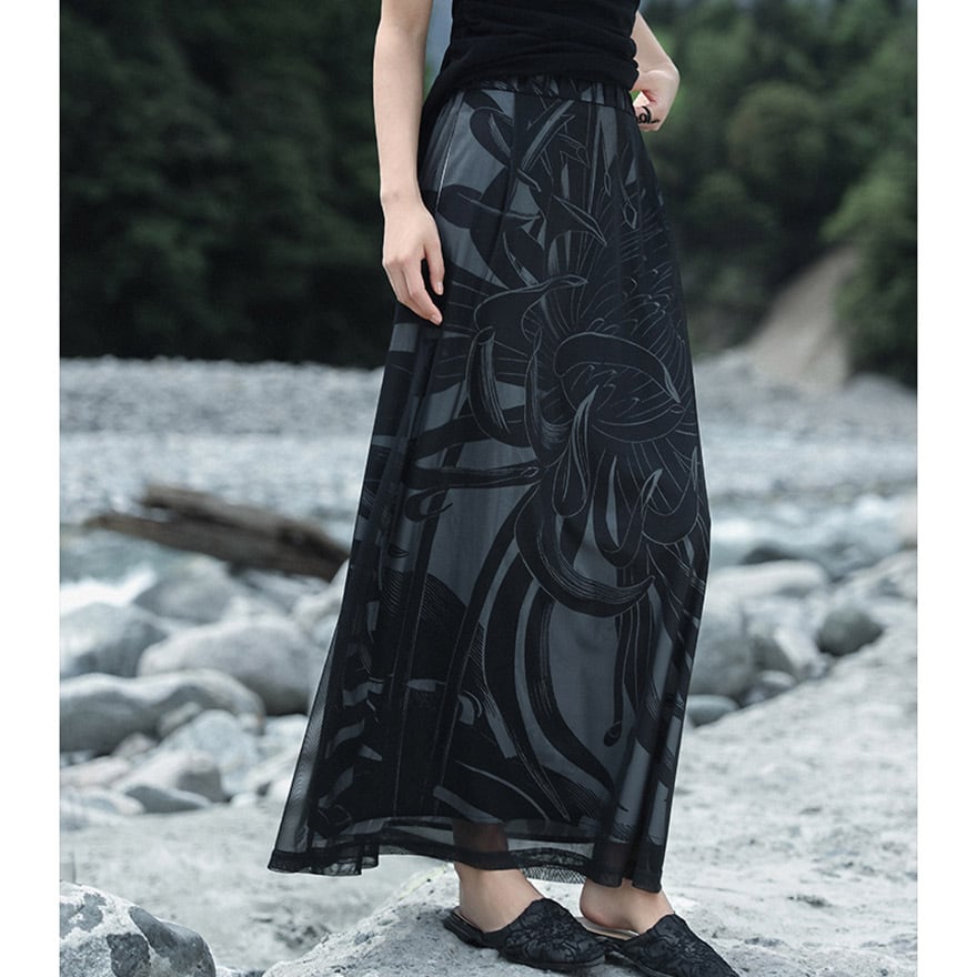 関連キーワード: #チャイナ風 #中華服 #スカート #ロングスカート #ブラック #黒 #プリント #花柄 #大青龍肆 #サブカル #個性的 #モード #ゴシック #夏服 #シアー #メッシュ #レイヤード #ウエストゴム #ゆったり #Aライン #20代ファッション #30代ファッション #オリエンタル #ダークファンタジー
