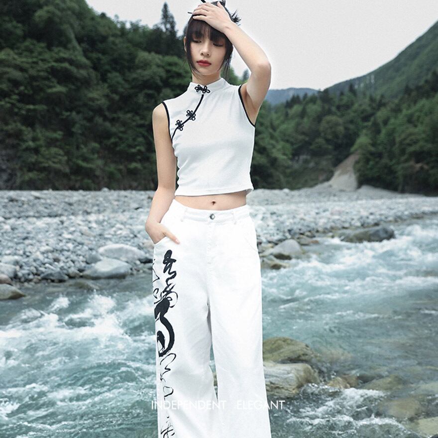 中華ゴシック ノースリーブ ホワイト 中華ボタン 大青龍肆 夏服 20代 30代ファッション