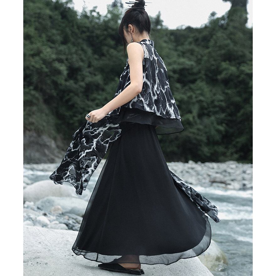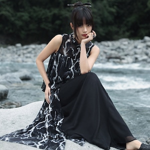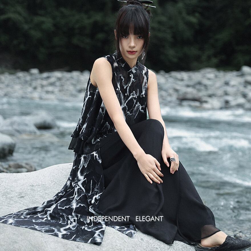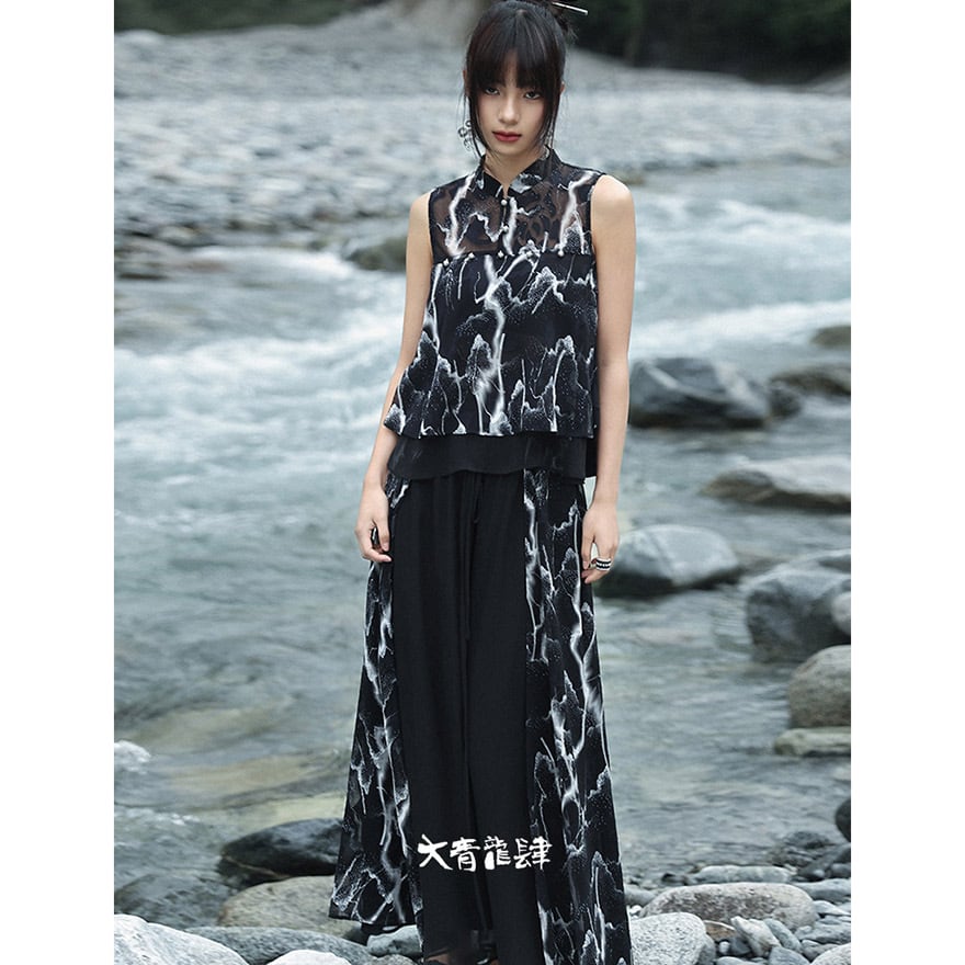 関連キーワード: #チャイナ風 #中華服 #スカート #ロングスカート #シフォンスカート #プリントスカート #水墨画風 #モノトーン #ブラック #黒 #モード系 #サブカル #個性的 #オリエンタル #アジアンテイスト #ウエストゴム #大青龍肆 #夏服 #20代ファッション #30代ファッション #透け感 #Aライン #フレアスカート #幽玄 #アーティスティック