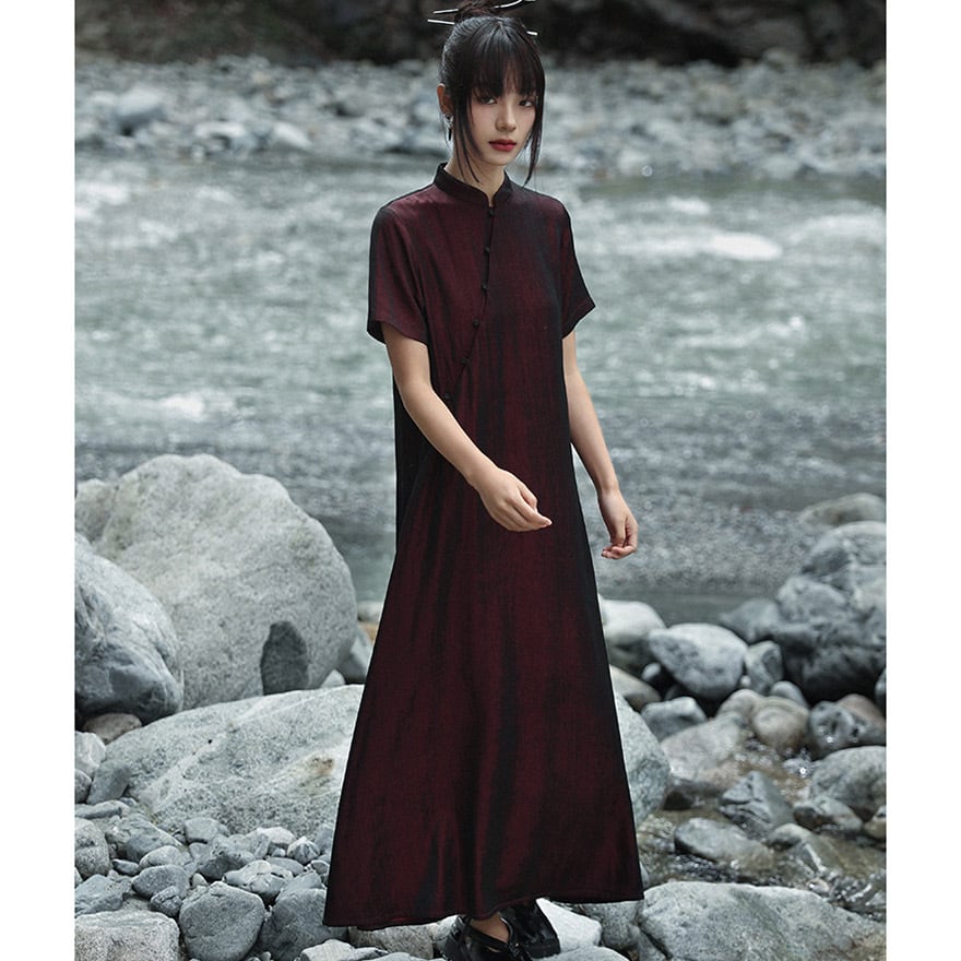 関連キーワード: #チャイナ風 #中華服 #ワンピース #チャイナドレス #レッド #赤 #深紅 #ワインレッド #スタンドカラー #マオカラー #Aライン #ロングワンピース #光沢 #艶感 #とろみ感 #大青龍肆 #夏服 #20代ファッション #30代ファッション #個性的 #オリエンタル #アジアンテイスト #モード #エレガント #パーティー #イベント #お呼ばれ #高見え