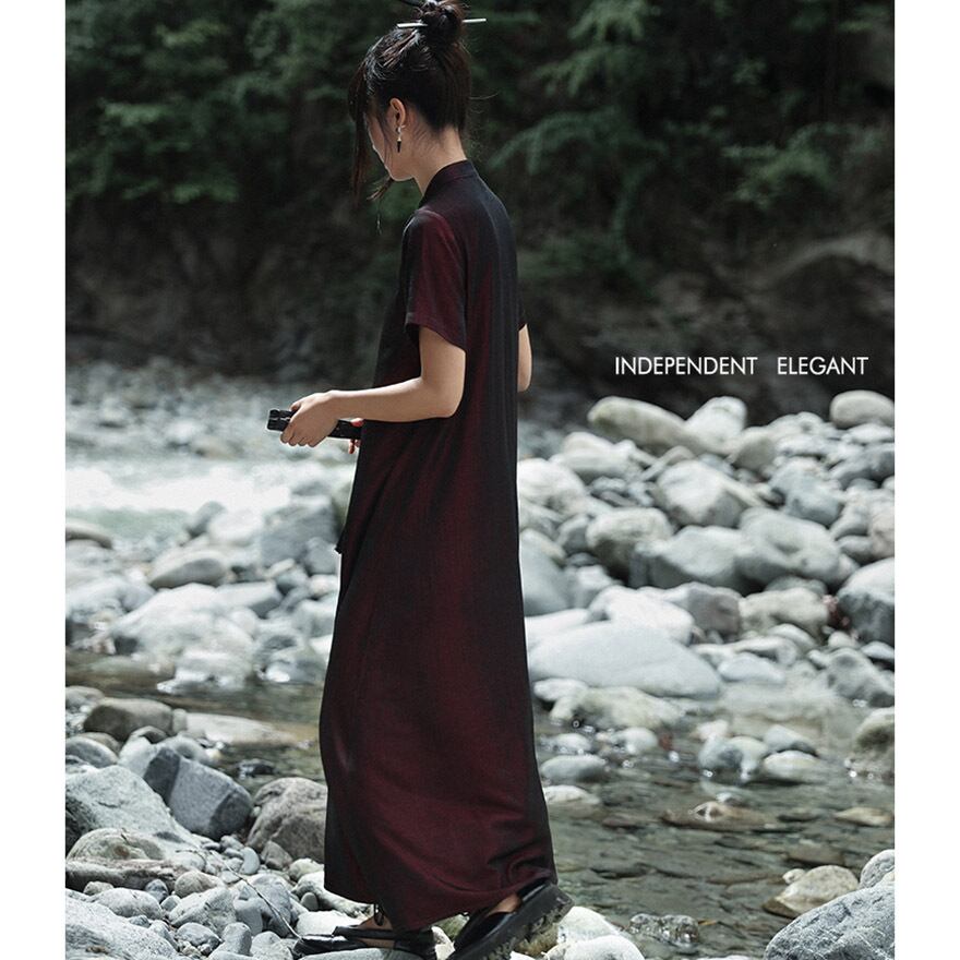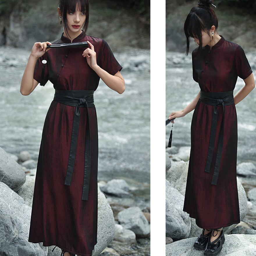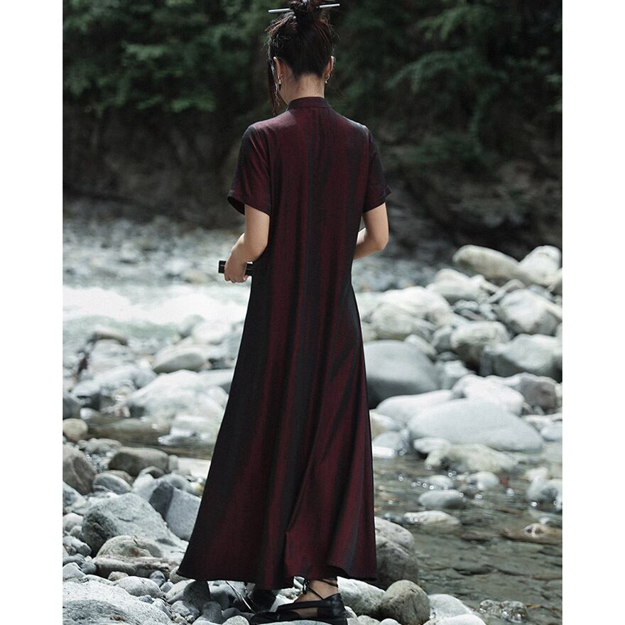 中華ゴシック ワンピース レッド チャイナドレス スタンドカラー 大青龍肆 夏服 20代 30代ファッション