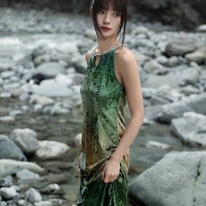 関連キーワード: #チャイナ風 #中華服 #ドレス #ワンピース #チャイナドレス #ロングドレス #グリーン #緑 #グラデーション #花柄 #漢字プリント #ベロア調 #スリット #ホルターネック #ノースリーブ #オリエンタル #アジアンテイスト #モード #セクシー #エレガント #アーティスティック #大青龍肆 #夏服 #20代ファッション #30代ファッション #パーティー #イベント #お呼ばれ #高見え #個性的
