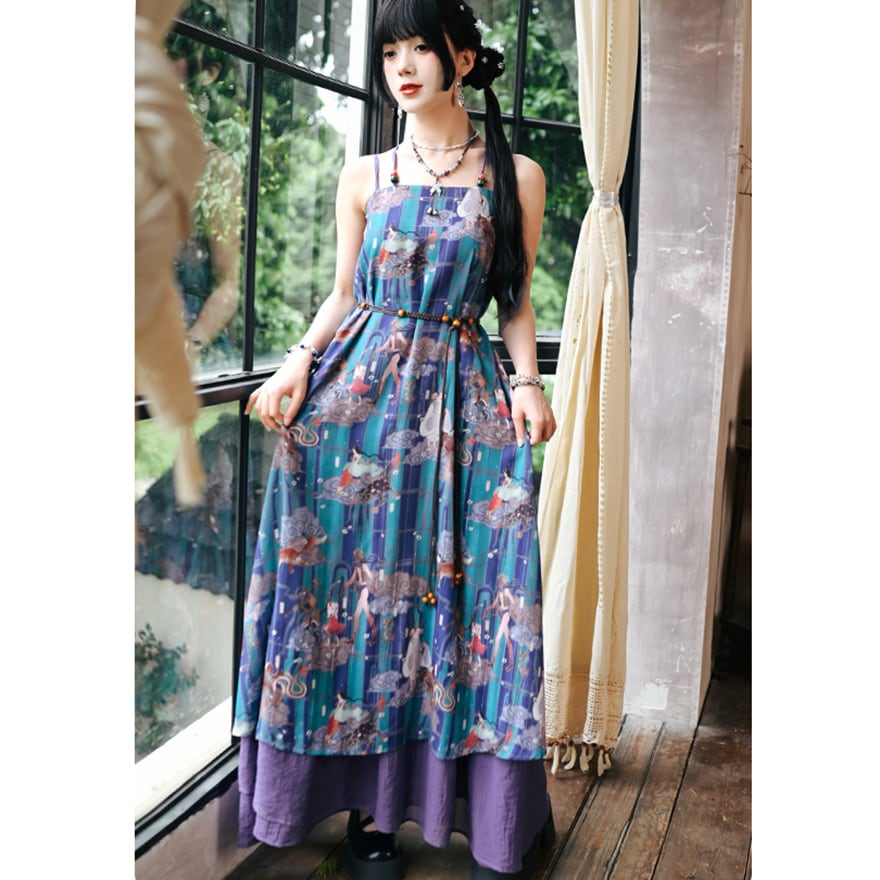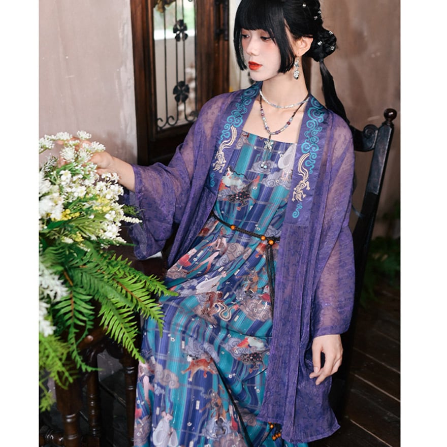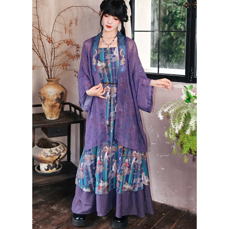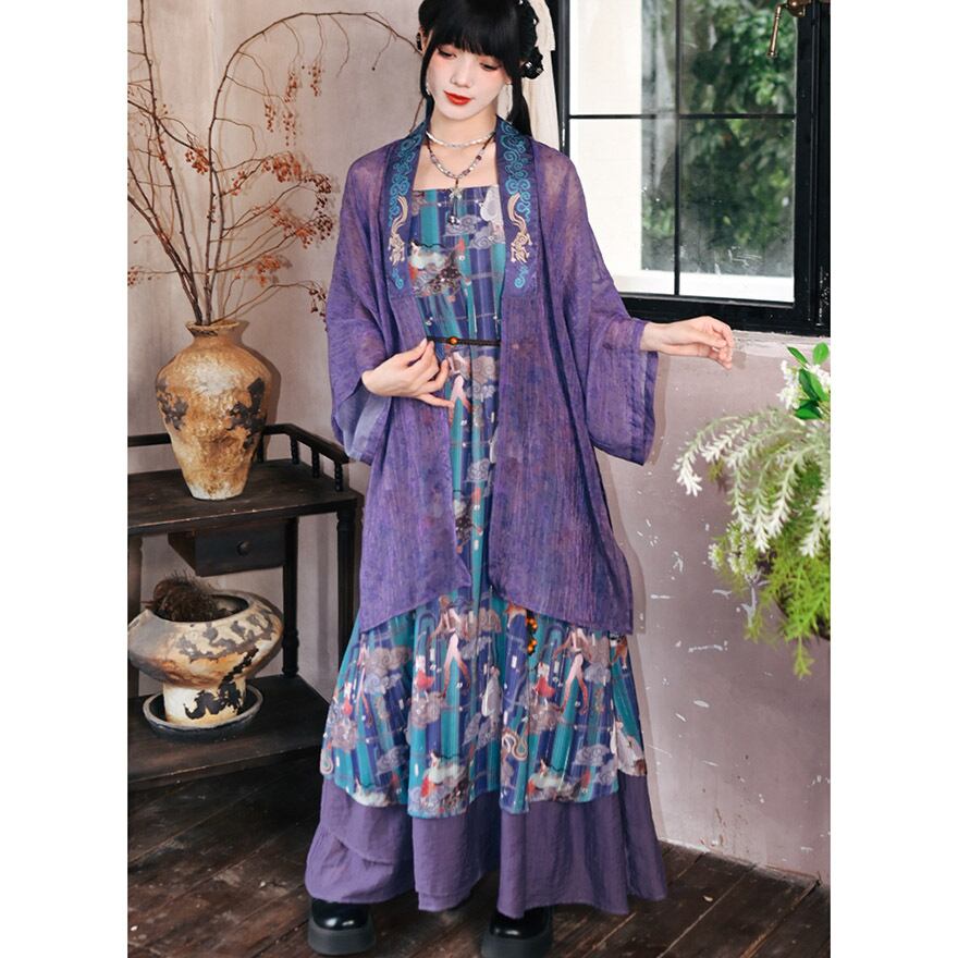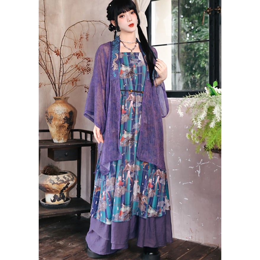中華ゴシック チャイナ服 中華服 古怪舎 ロングカーディガン 羽織り シフォン 紫 中華系ファッション 30代ファッション 夏服