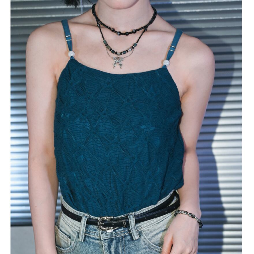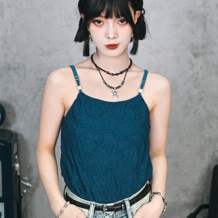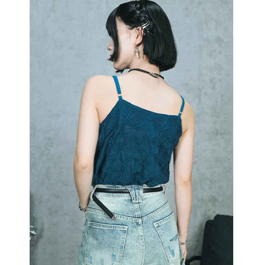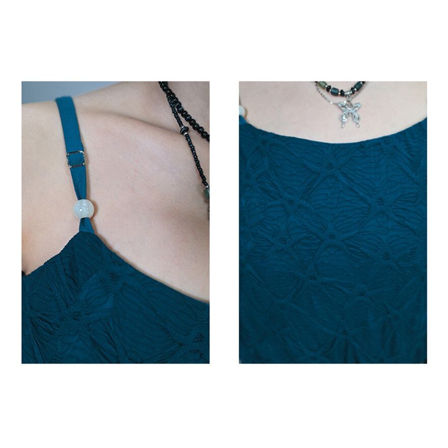 関連キーワード: #チャイナ風 #中華服 #古怪舎 #サブカルファッション #キャミソール #藍色 #ダークティール #ピーコックブルー #個性的 #30代ファッション #夏服 #インナー #レイヤード #テクスチャー #モード系 #ジャカード風
