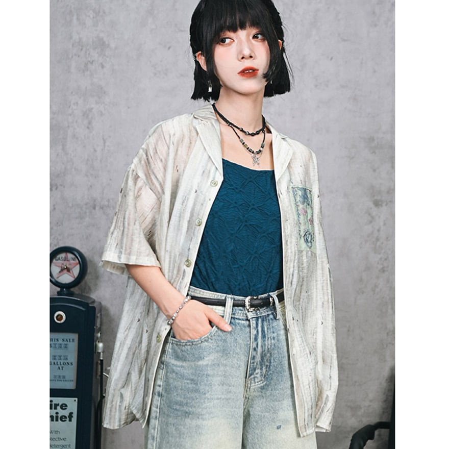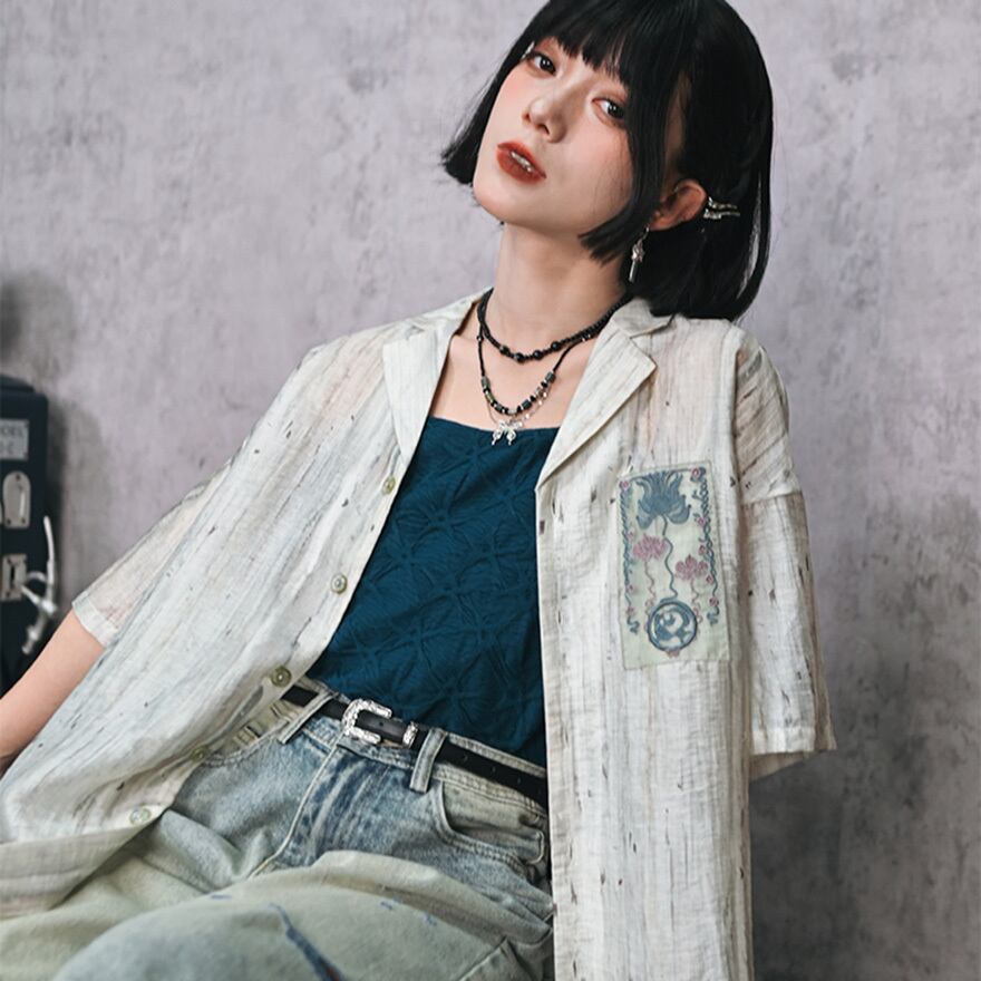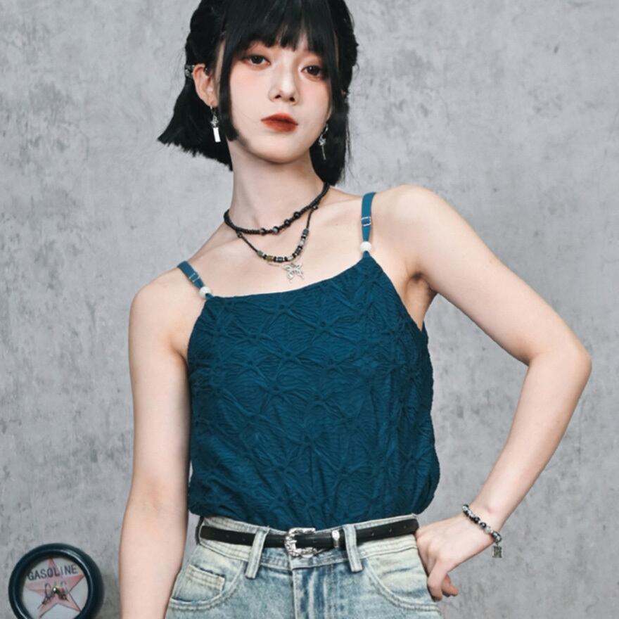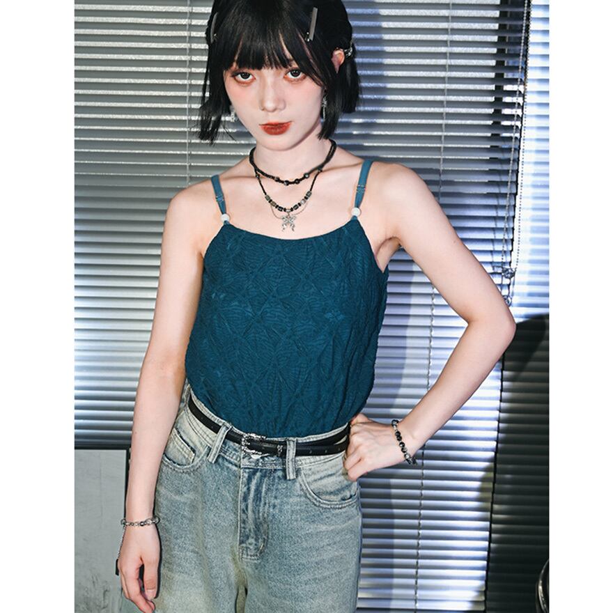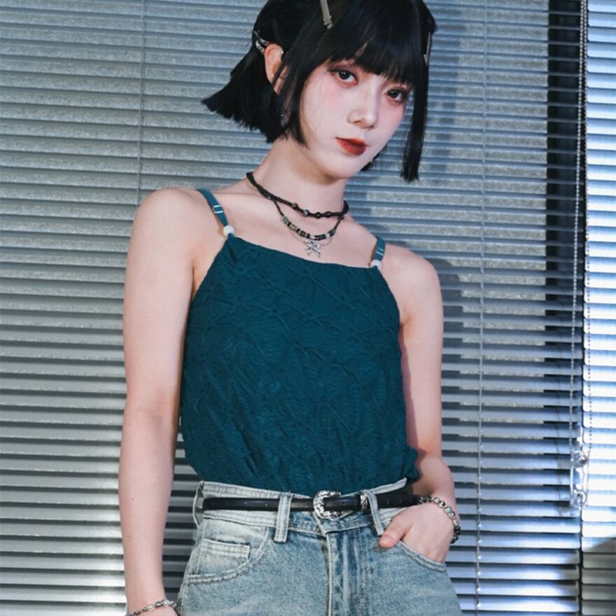 関連キーワード: #チャイナ風 #中華服 #古怪舎 #サブカルファッション #キャミソール #藍色 #ダークティール #ピーコックブルー #個性的 #30代ファッション #夏服 #インナー #レイヤード #テクスチャー #モード系 #ジャカード風