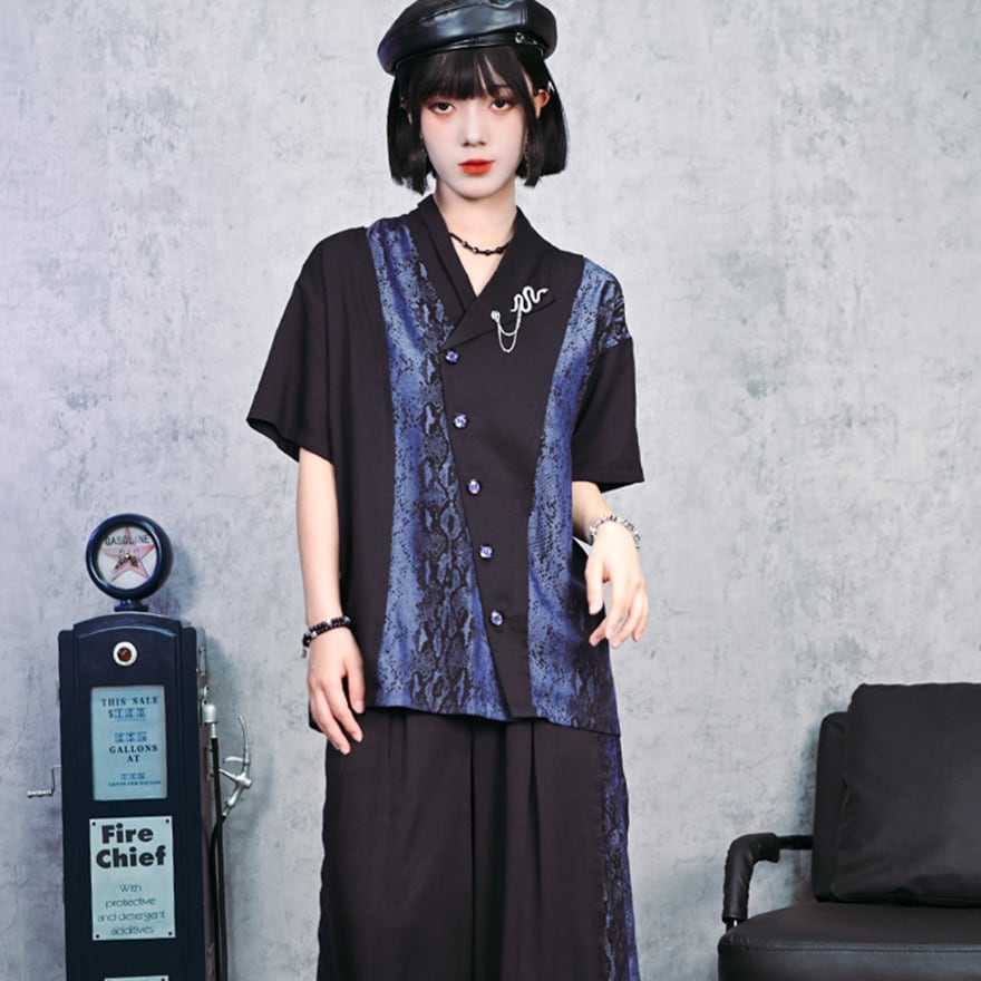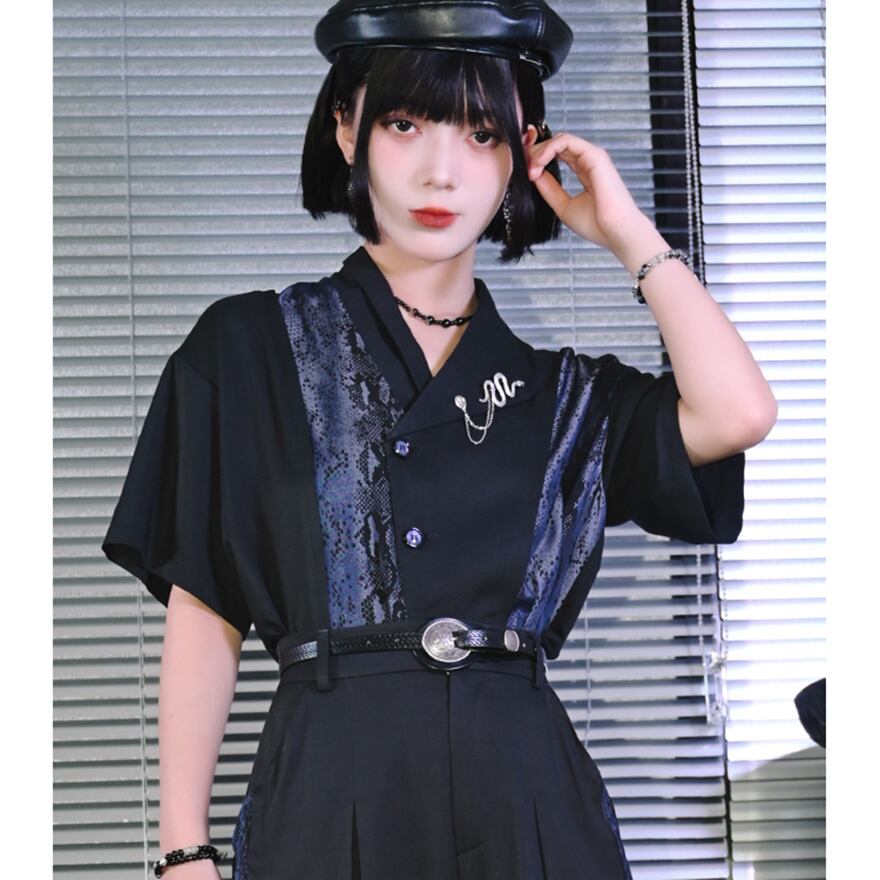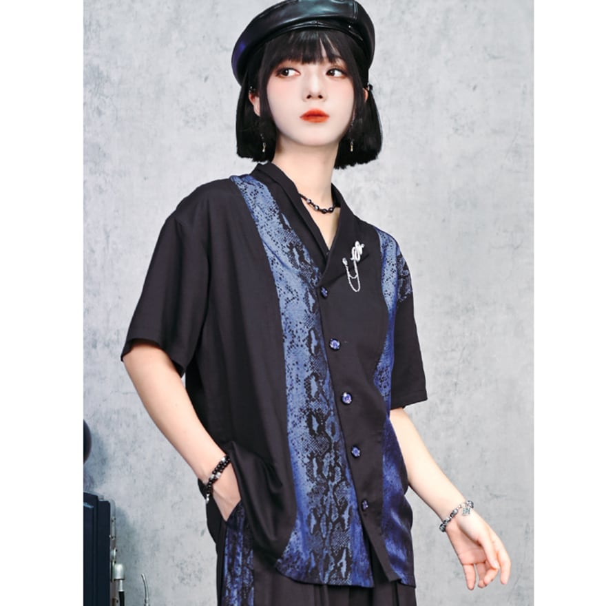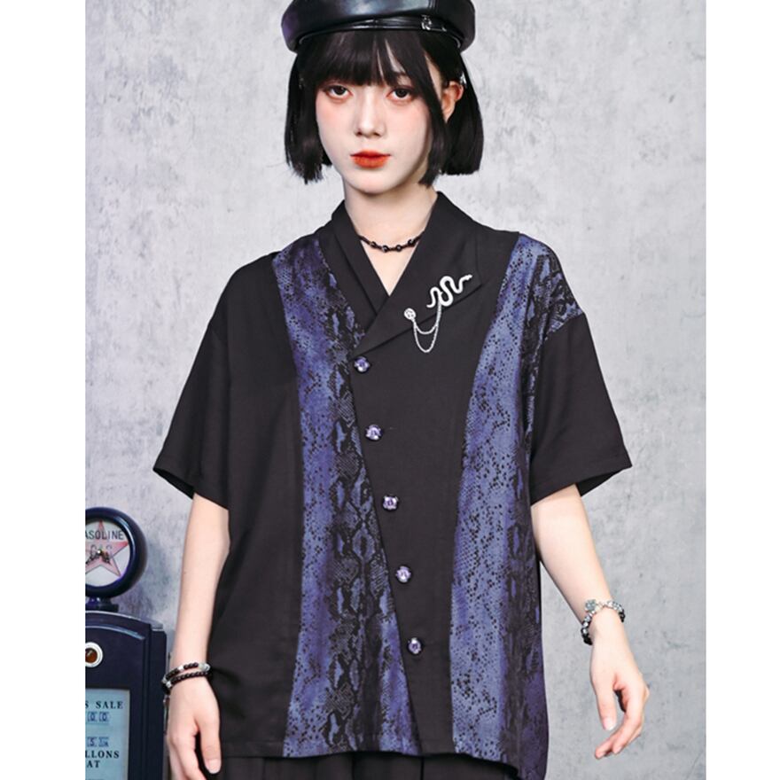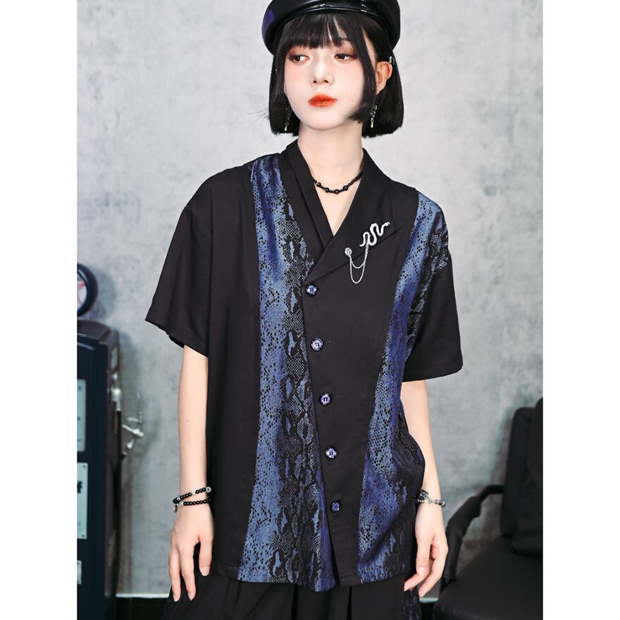 中華ゴシック チャイナ服 中華服 古怪舎 シャツ 半袖 蛇柄 プリント柄 中華系ファッション 30代ファッション 夏服