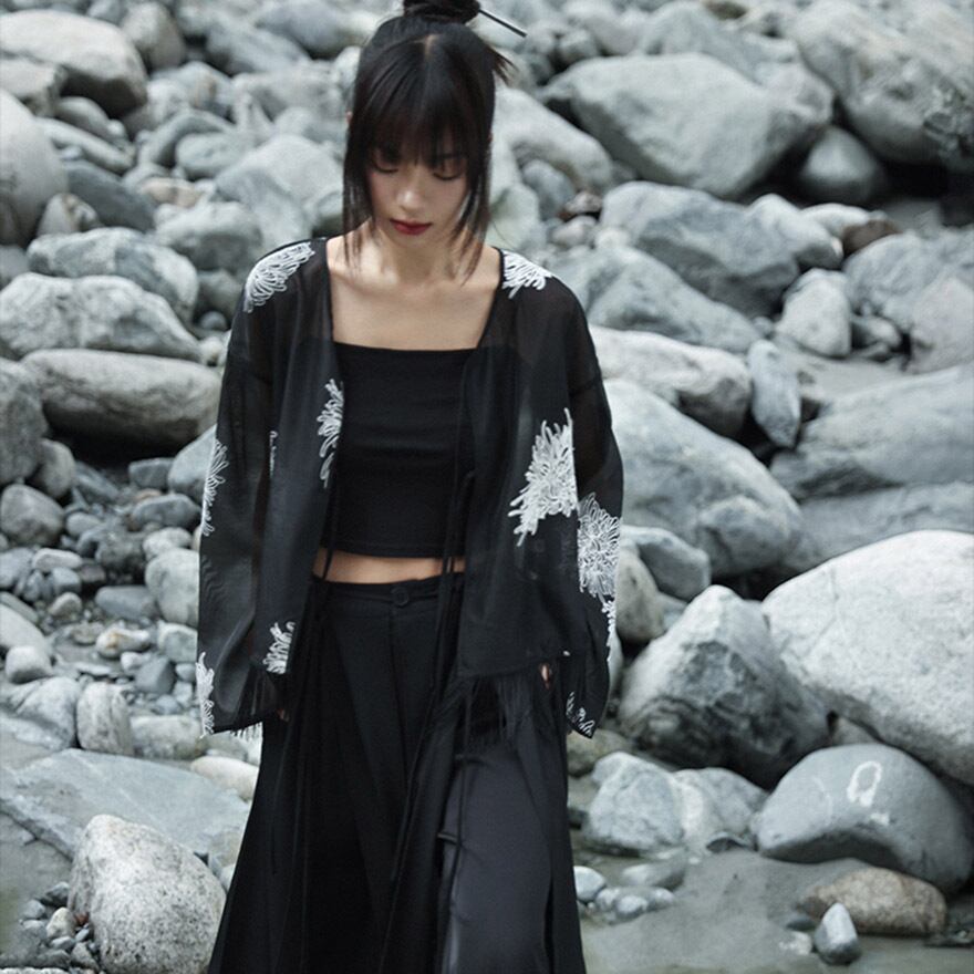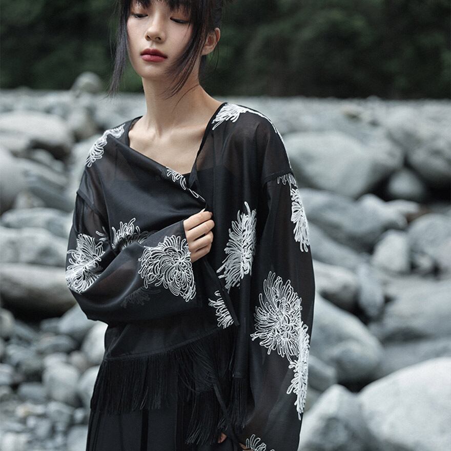 関連キーワード: #チャイナ風 #中華服 #ジャケット #羽織り #菊 #刺繍 #透け感 #シアー #大青龍肆 #20代ファッション #30代ファッション #夏服 #ブラックコーデ #オリエンタルゴシック #和ゴス #フリンジ #個性的 #妖艶 #アーティスティック #モノトーン