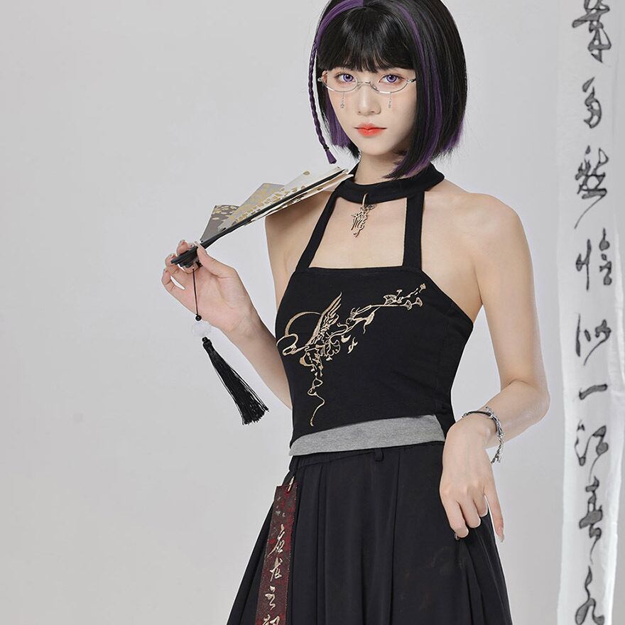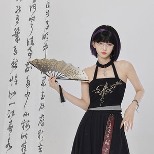 中華ゴシック チャイナ服 中華服 キャミソール アクセサリー付き ホルターネック 卿棠オリジナル山海経 夏服 20代 30代ファッション