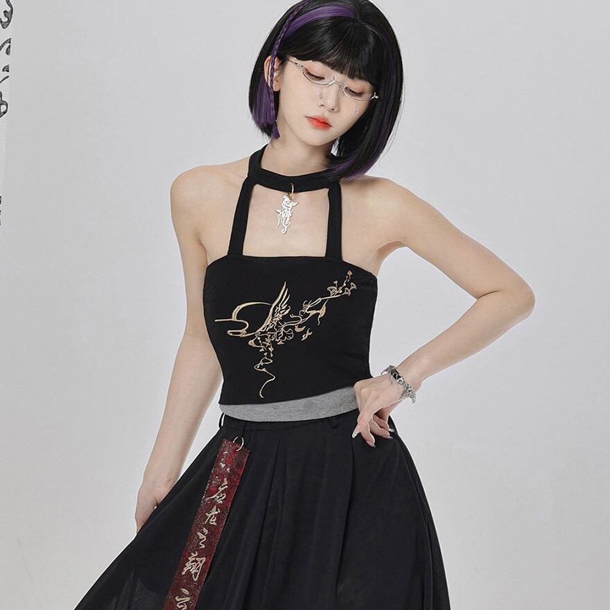 関連キーワード: #チャイナ風 #中華服 #キャミソール #ホルターネック #アクセサリー付き #ネックレスセット #卿棠 #山海経 #刺繍 #霊獣 #肌見せ #クール #モード #サブカル #ブラック #黒 #ゴールド #金 #夏服 #20代ファッション #30代ファッション #個性的 #イベント #フェス