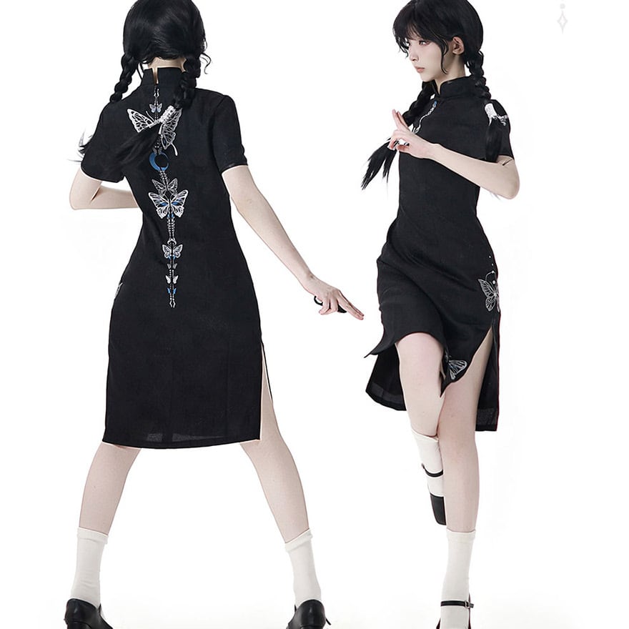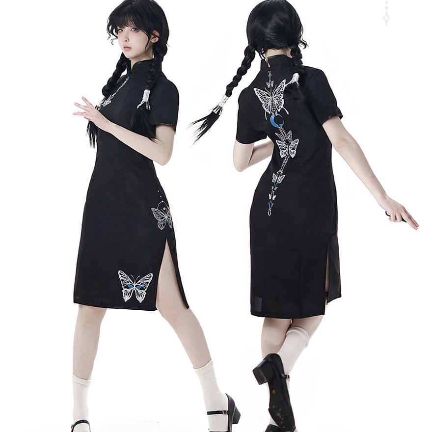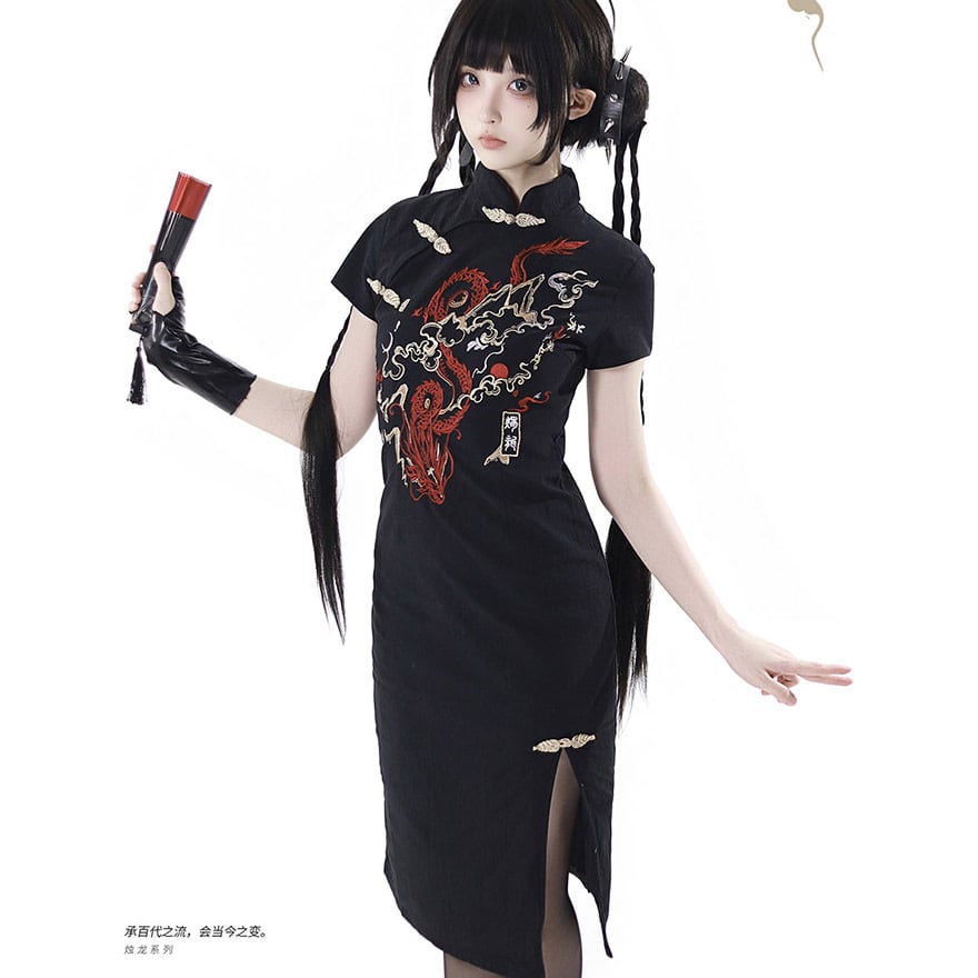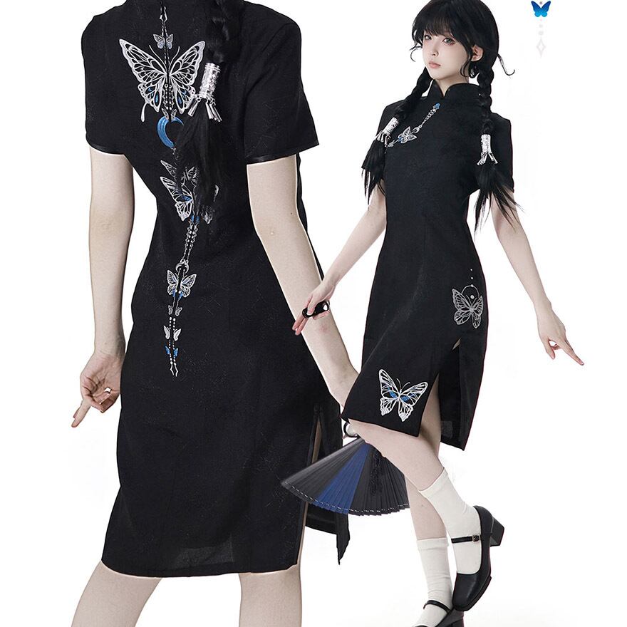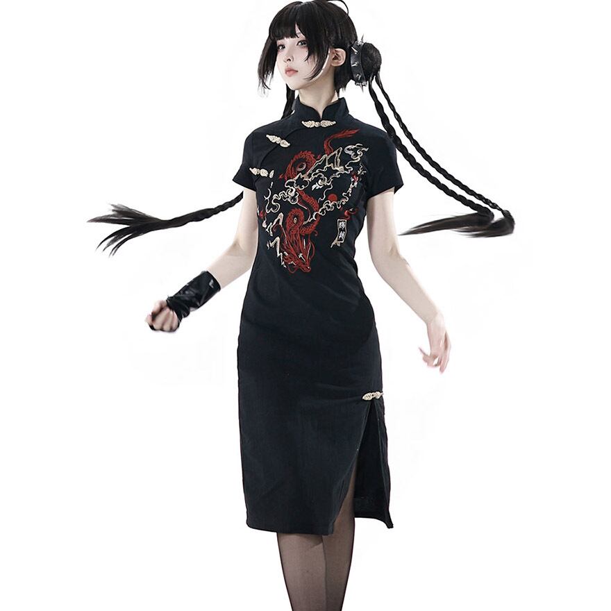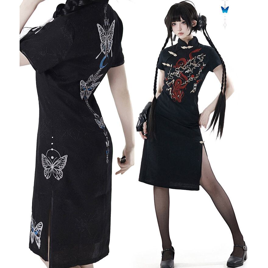 関連キーワード: #チャイナドレス #中華服 #チャイナワンピース #ゴシック #サブカル #ダークファッション #龍 #ドラゴン #蝶 #バタフライ #刺繍 #プリント #スリット #山海経 #卿棠 #クール #セクシー #ミニワンピース #ブラック #黒 #夏服 #20代ファッション #30代ファッション #個性的