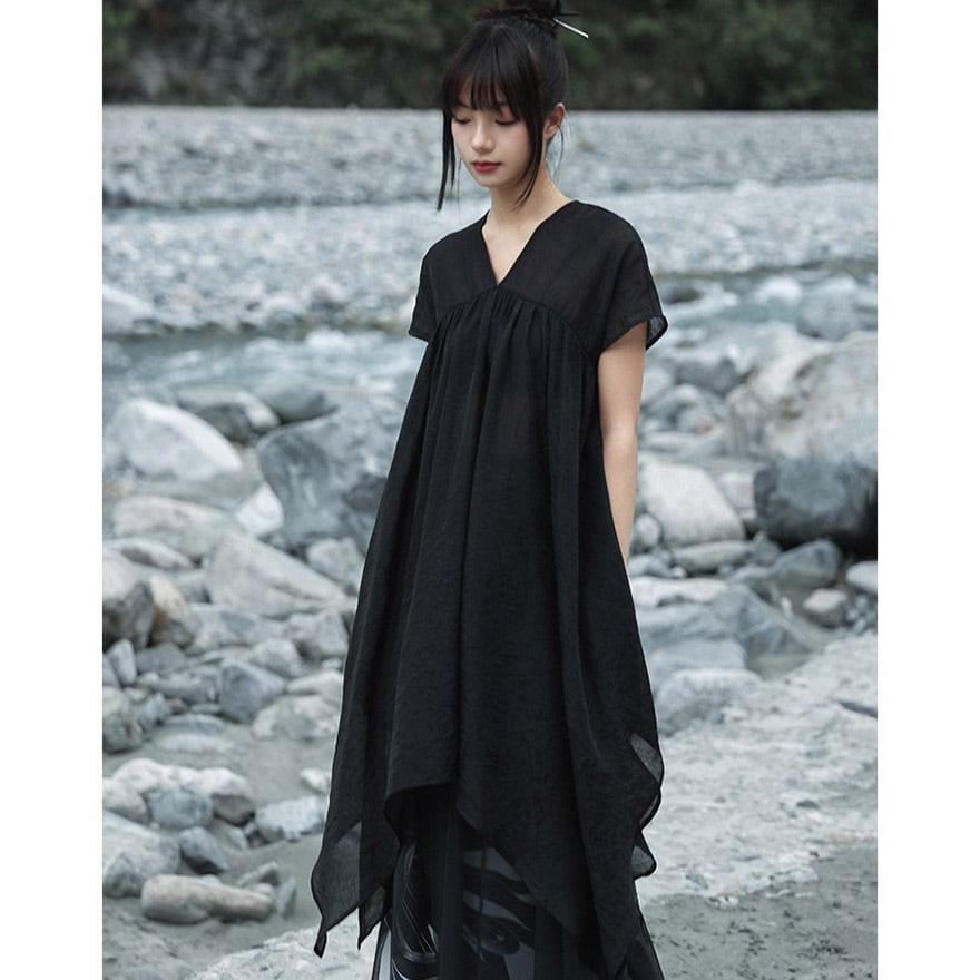 関連キーワード: #チャイナ風 #中華服 #ワンピース #アシンメトリー #モード系 #サブカル #レイヤード #ブラックコーデ #夏服 #個性的ファッション #大青龍肆