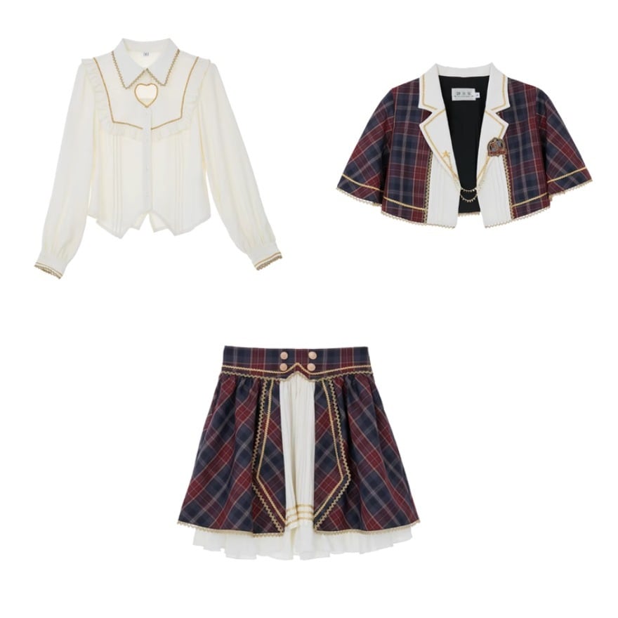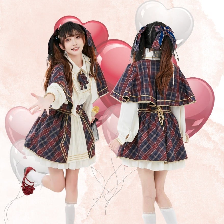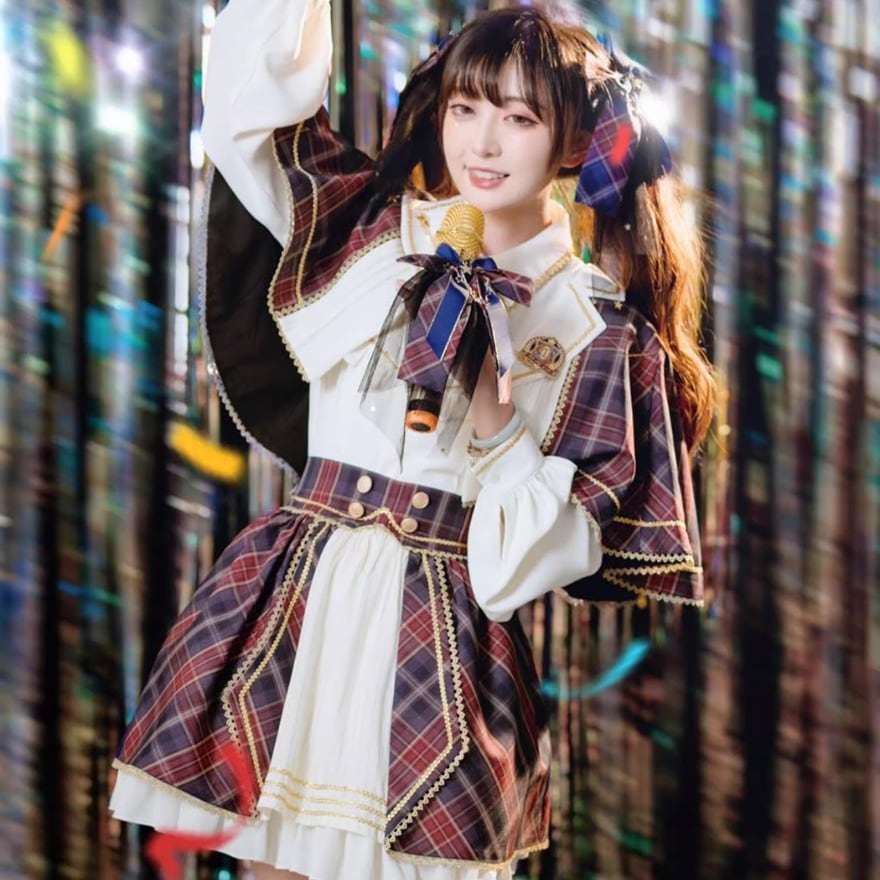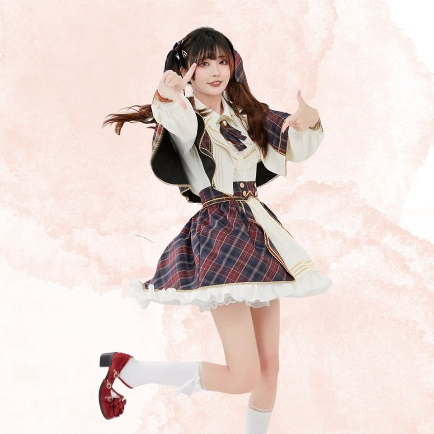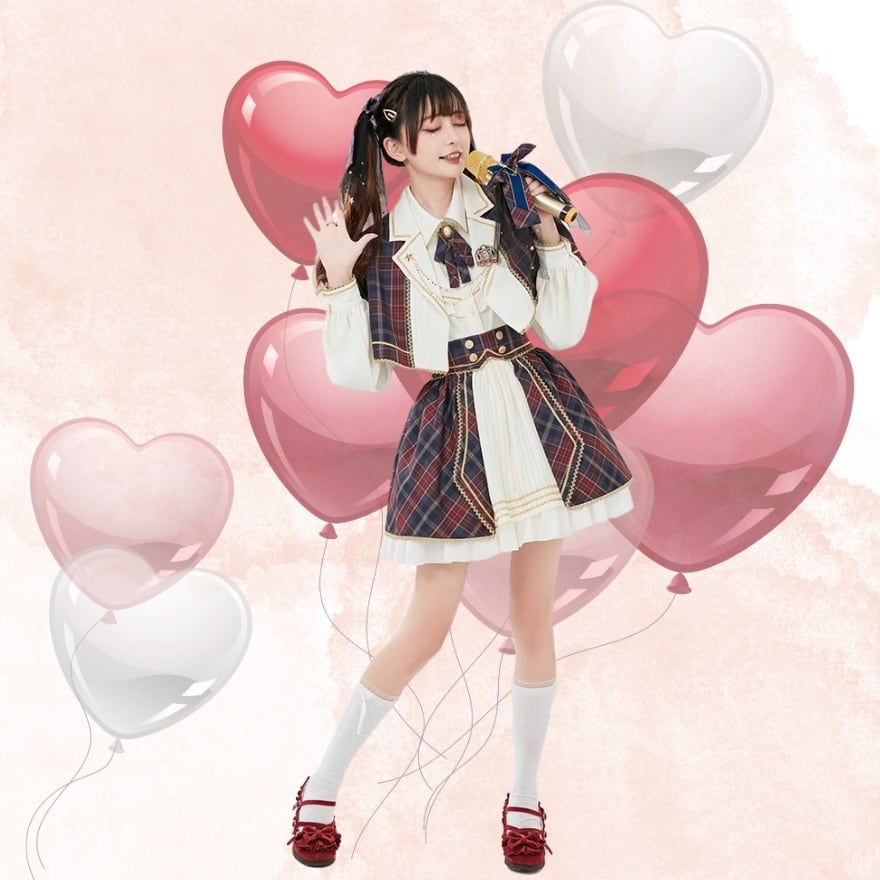 【専用ご注文】 アイドル衣装 ステージ衣装 学園祭 コンカフェ イベント オールインワン 5点セット チェック柄 かわいい 送料無料