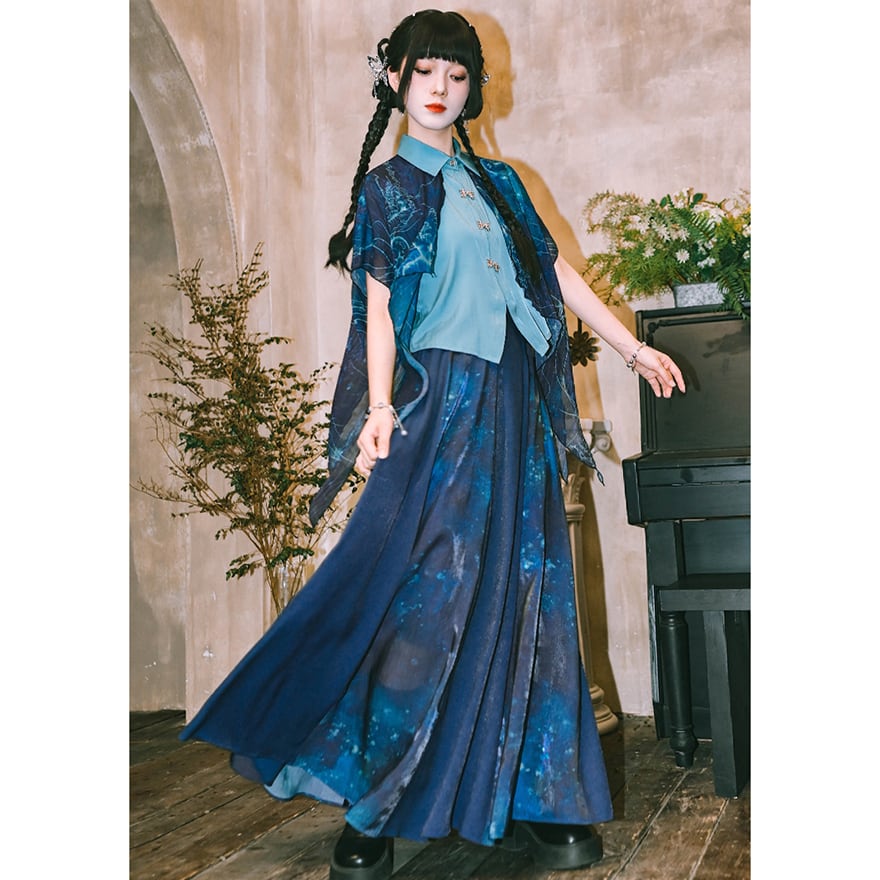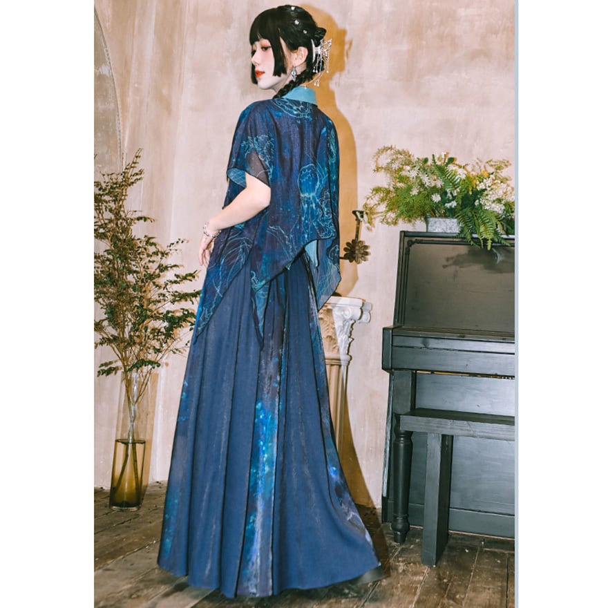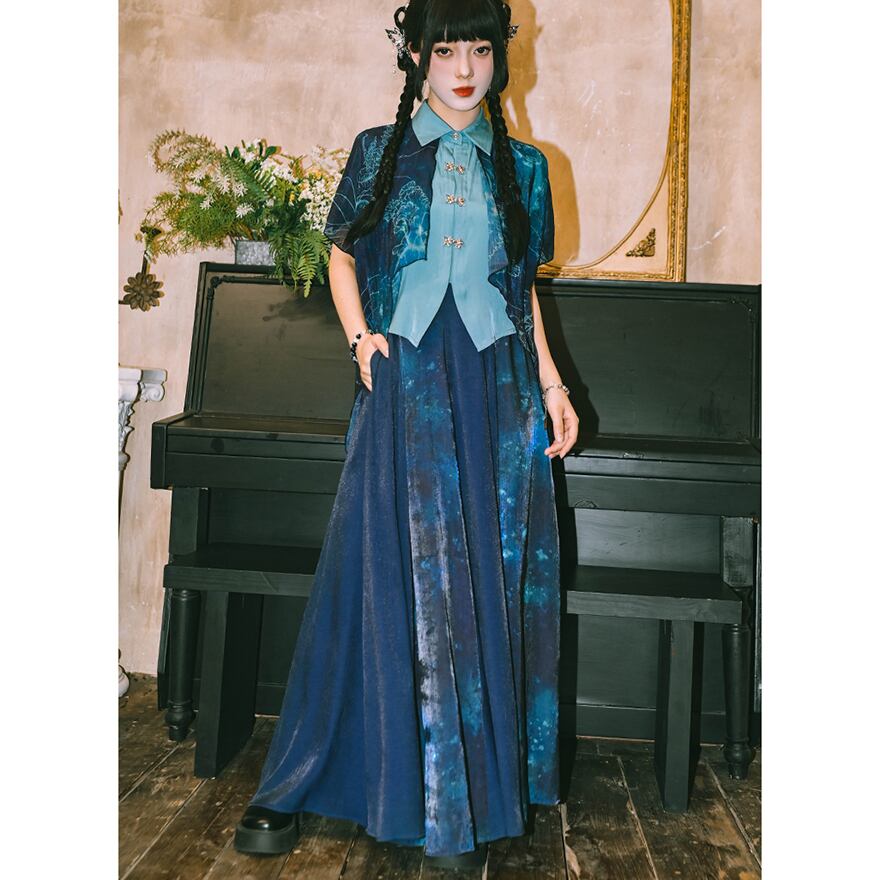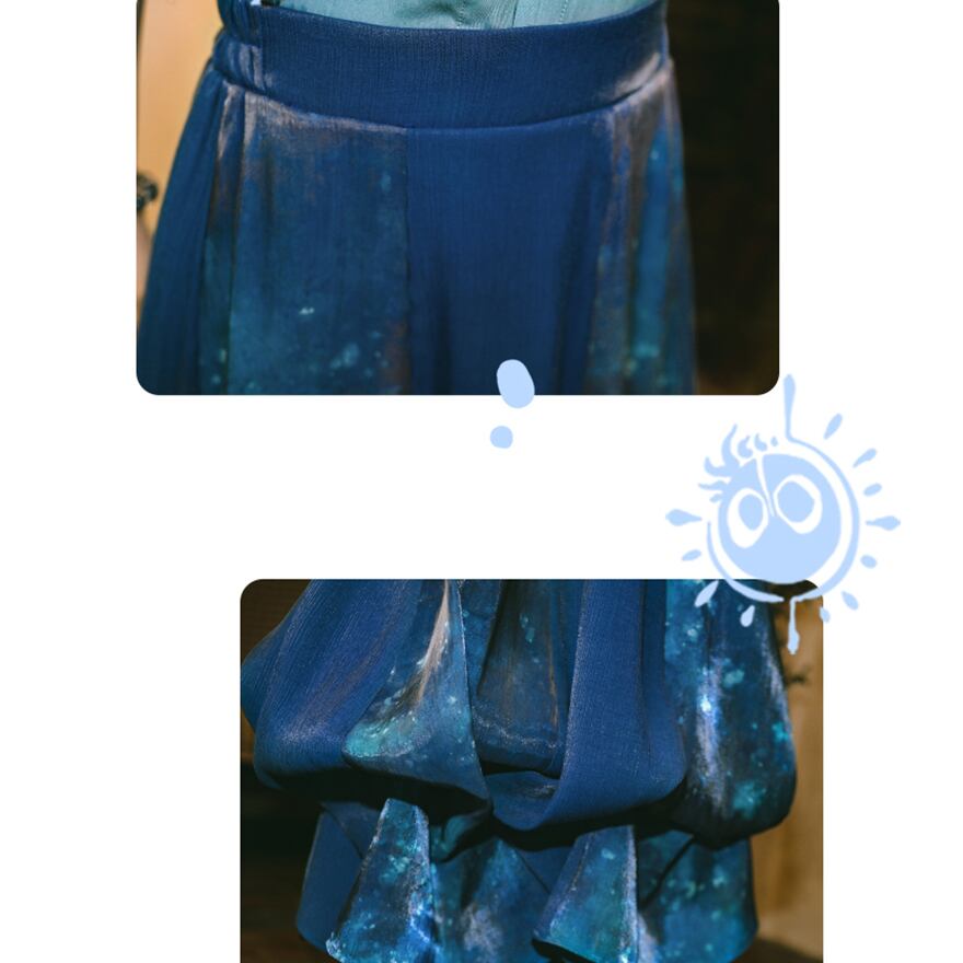 関連キーワード: #チャイナ風 #中華服 #ワイドパンツ #バルーンパンツ #袴パンツ #クラゲ柄 #2WAY #モード系 #サブカル #個性的ファッション #青 #夏服 #古怪舎
