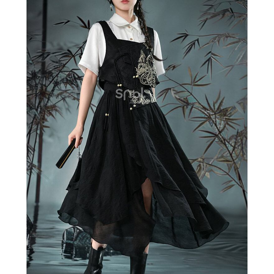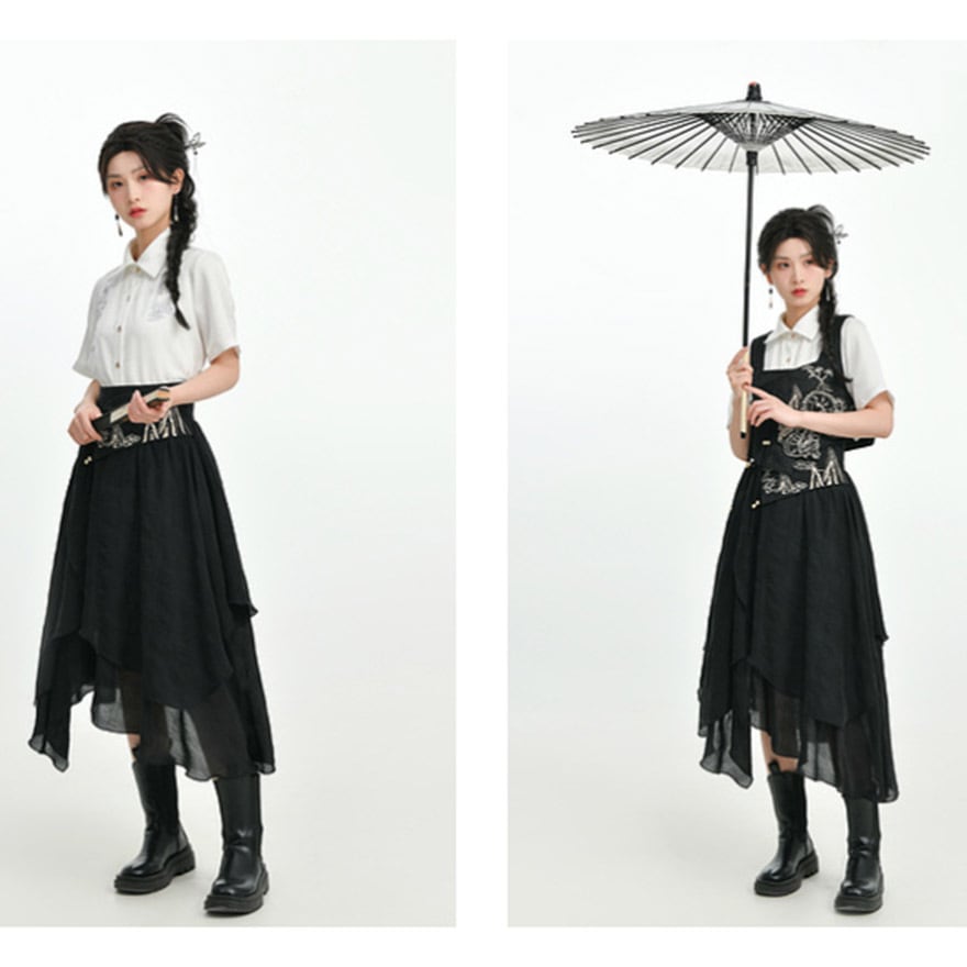 中華ゴシック シャツ 刺繍 中華系ファッション 地雷系ファッション 夏服
