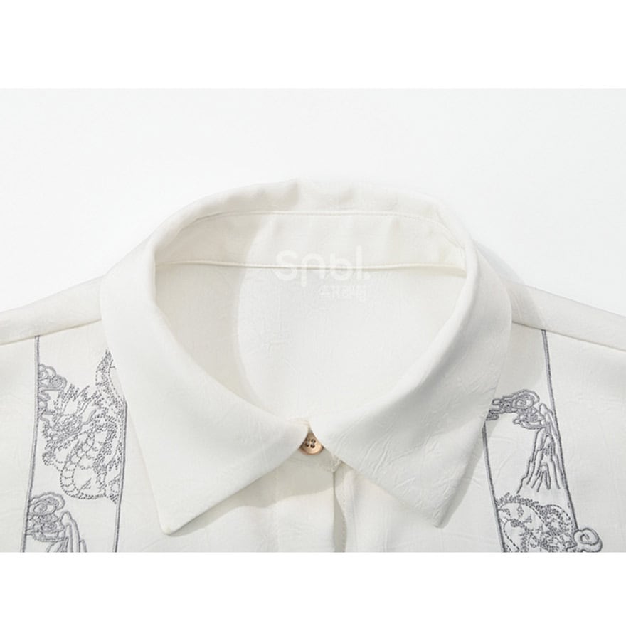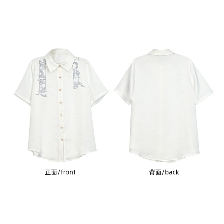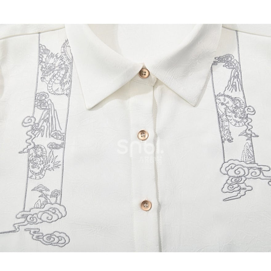 関連キーワード: #チャイナ風 #中華服 #シャツ #ブラウス #半袖 #刺繍 #雲 #祥雲 #オリエンタル #サブカル #地雷系 #白シャツ #着回し #夏服