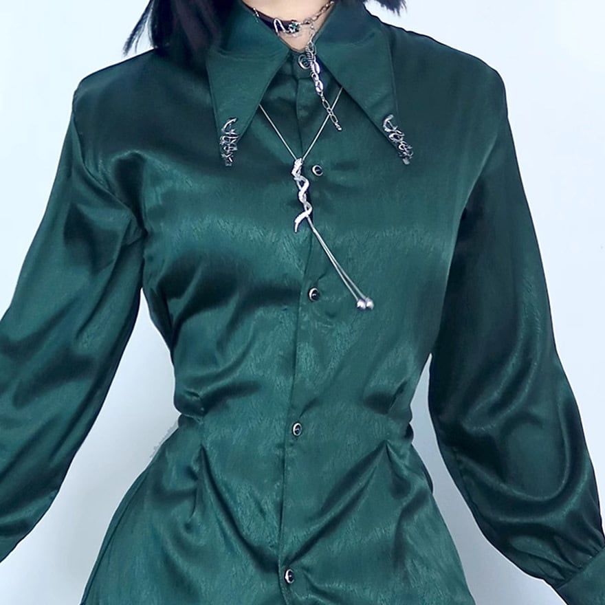 シンプルなシャツやブラウスに合わせるだけで、一気にミステリアスでモードな雰囲気を演出できる魔法のようなアイテム。