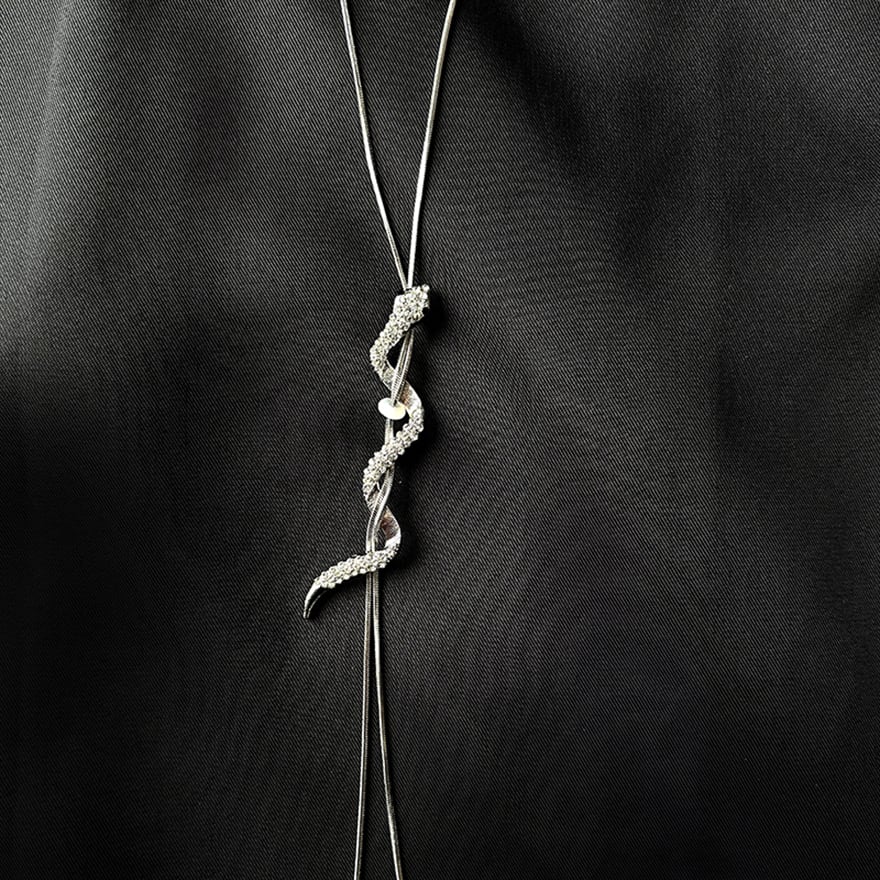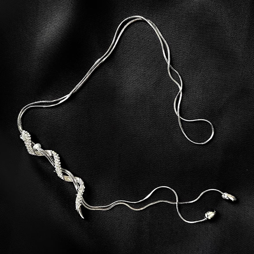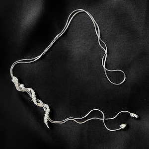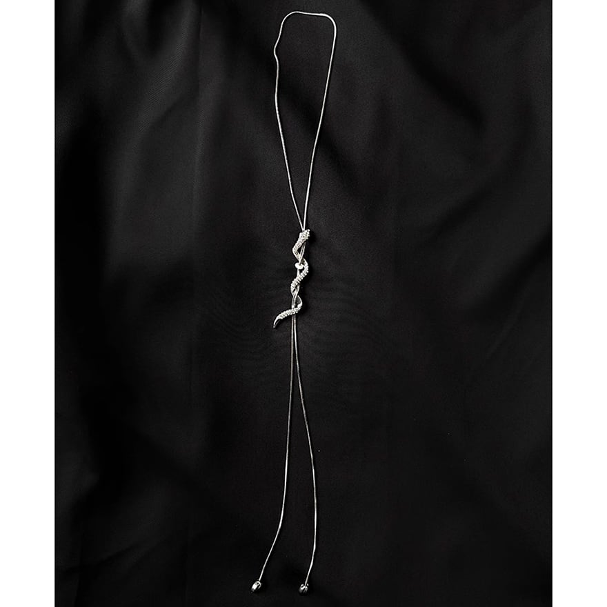 ジルコンを贅沢にまとったスネークモチーフが、妖しく輝くループタイ風のネックレスです。