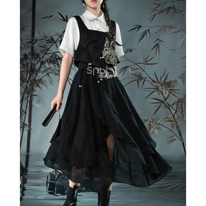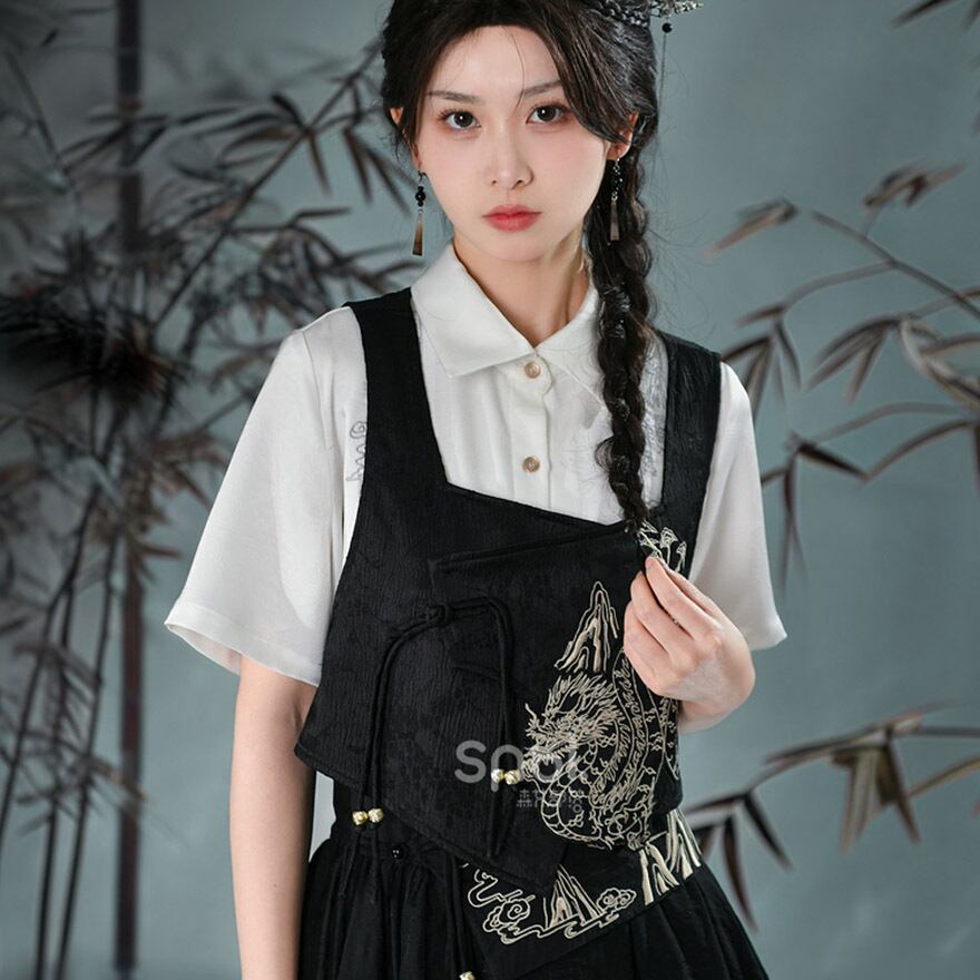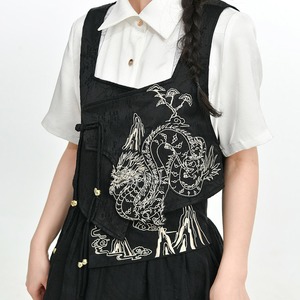 関連キーワード: #チャイナ風 #中華服 #ベスト #ジレ #刺繍 #龍 #ドラゴン #アシンメトリー #モード系 #サブカル #地雷系 #レイヤード #セットアップ #ブラックコーデ #夏服