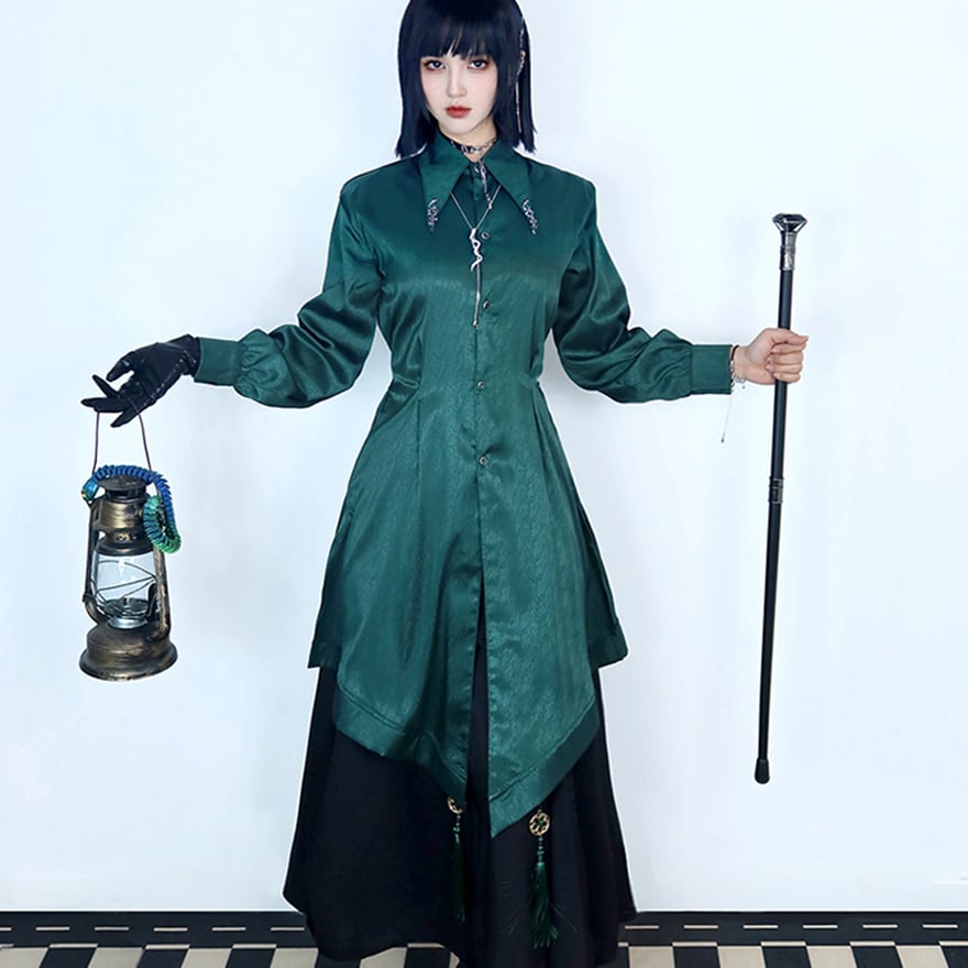 関連キーワード: #チャイナ風 #中華服 #シャツ #ロングシャツ #ゴシック #王子系 #ヴィジュアル系 #ユニセックス #ペアルック #アシンメトリー #燕尾服 #蛇 #モード系 #サブカル #蒼宝儿屋