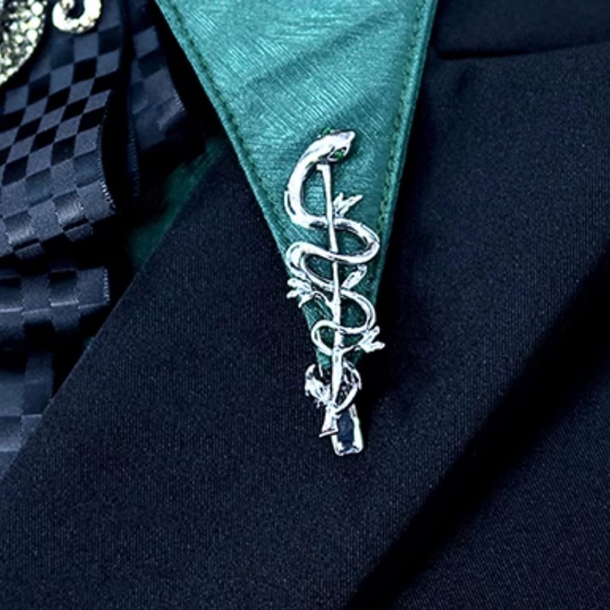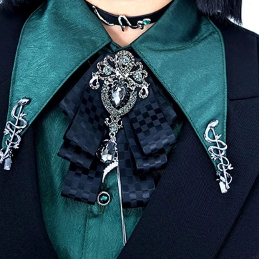 襟元を飾る付属の「蛇モチーフクリップ」が、ダークな世界観に妖しい輝きを添えます。