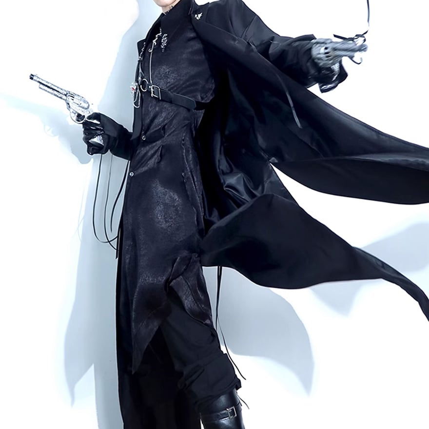 騎士のマントを思わせる、後ろ丈の長い燕尾風のシルエットが美しいユニセックスシャツです。