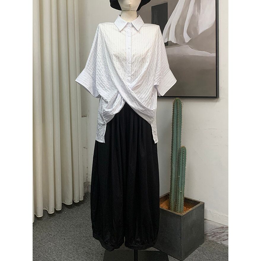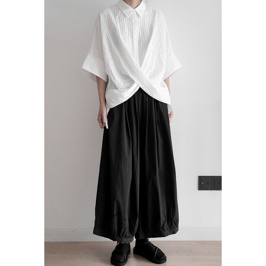 関連キーワード: #チャイナ風 #中華服 #シャツ #モード系 #サブカル #アシンメトリー #ドレープ #山本耀司風 #モノトーン #個性的ファッション #夏服 #地雷系