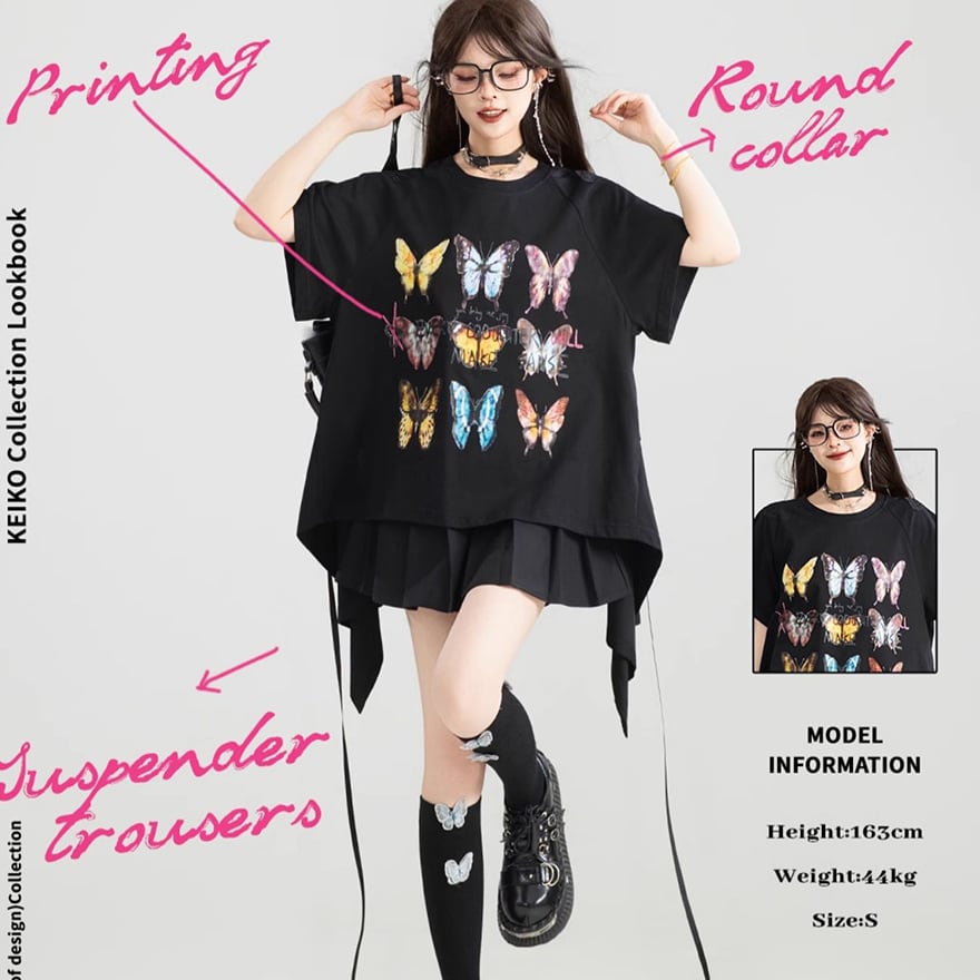 #サブカル #地雷服 #Tシャツ #アシンメトリー #蝶 #バタフライ #刺繍 #バックオープン #バックシャン #Y2K #個性的ファッション #夏服 #KEIKOシリーズ
