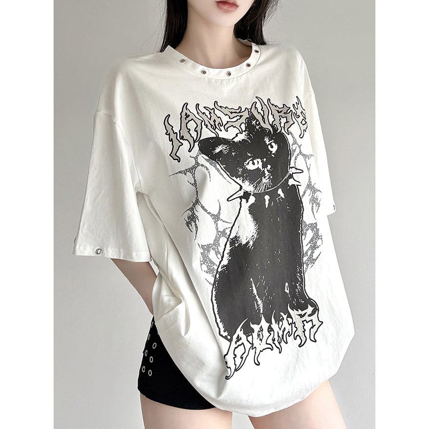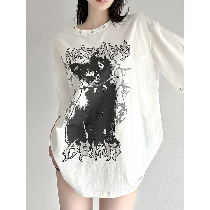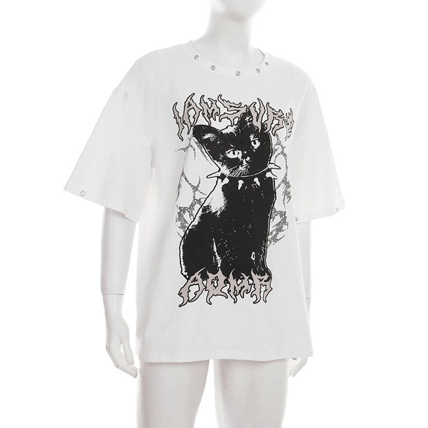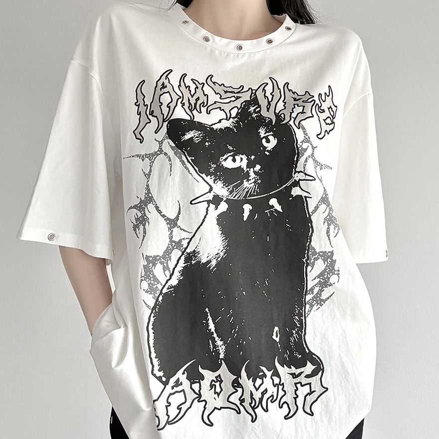 関連キーワード: #サブカル #地雷系 #パンク #ロック #V系 #ストリートファッション #オーバーサイズ #ビッグシルエット #Tシャツ #猫 #黒猫 #グラフィックT #ハトメ #個性的 #Y2K