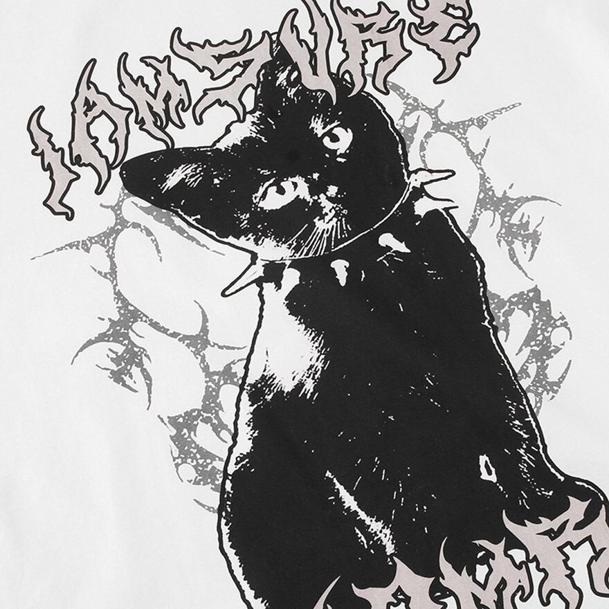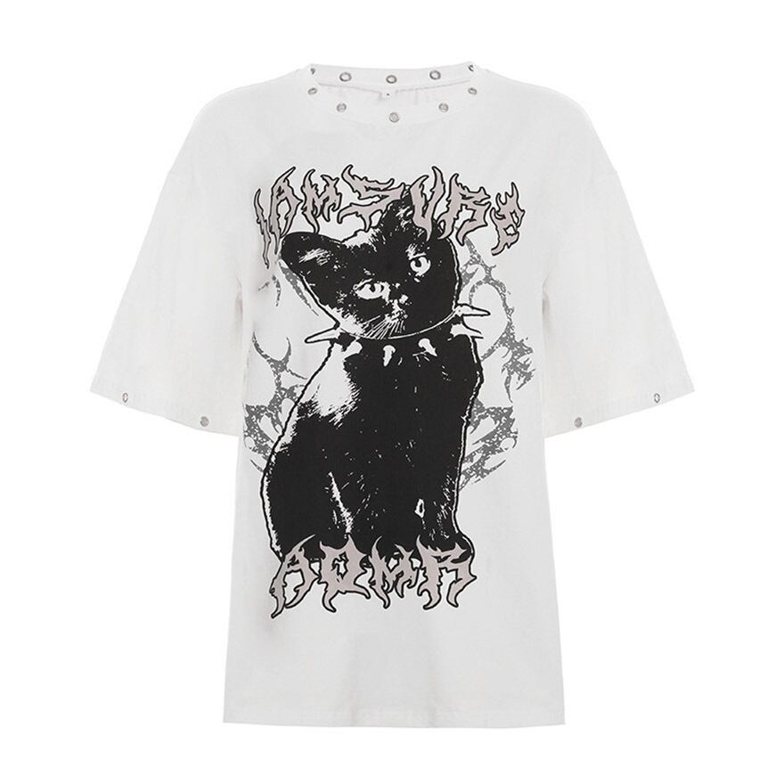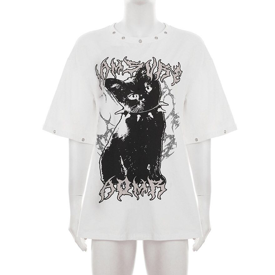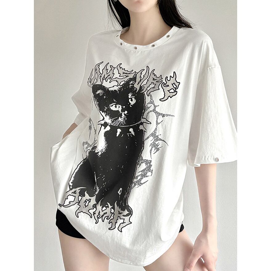 関連キーワード: #サブカル #地雷系 #パンク #ロック #V系 #ストリートファッション #オーバーサイズ #ビッグシルエット #Tシャツ #猫 #黒猫 #グラフィックT #ハトメ #個性的 #Y2K