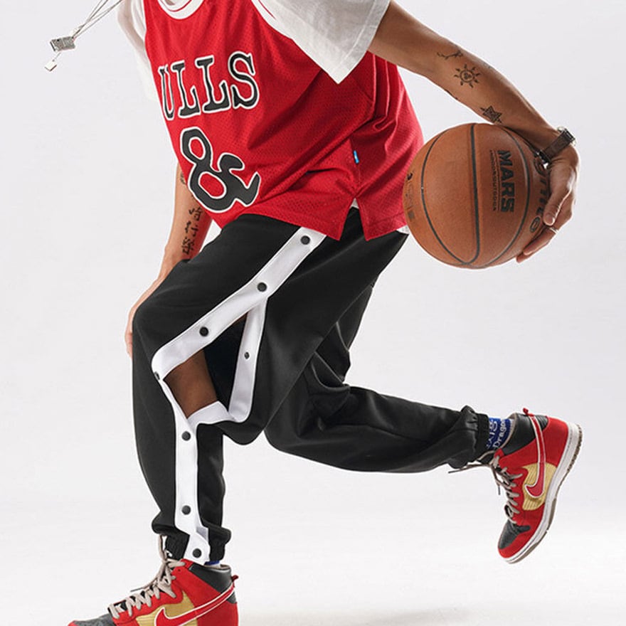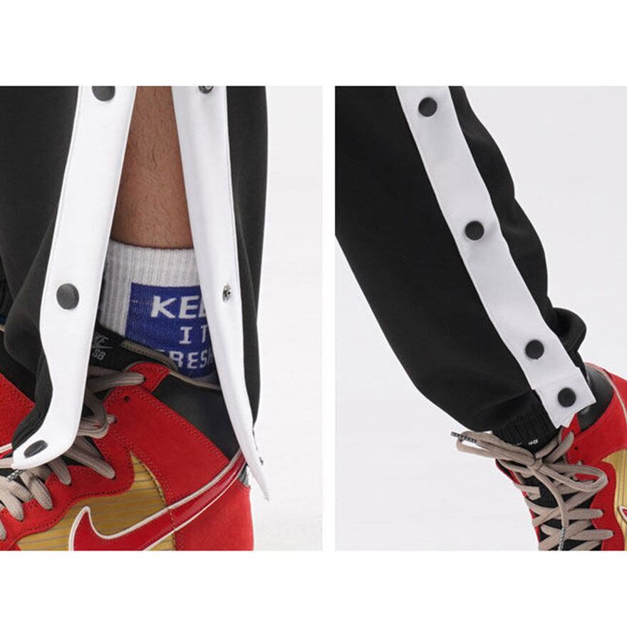 サイドラインに沿ってびっしりと並んだスナップボタンが、唯一無二の個性を放つトラックパンツです。