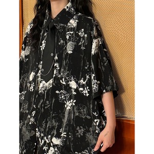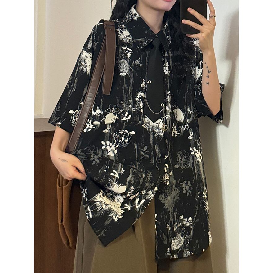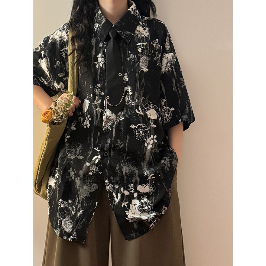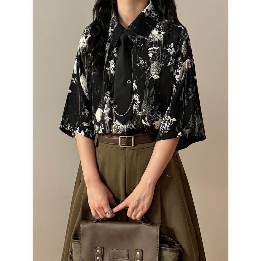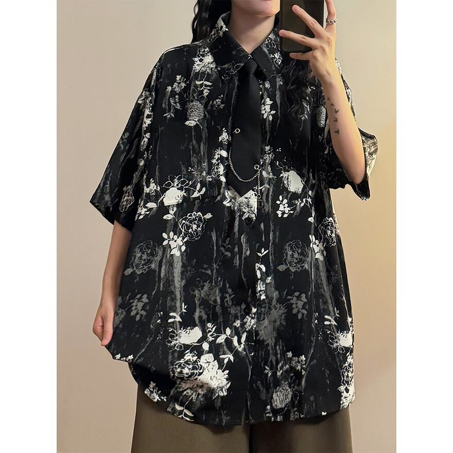 WithU ゴスロリ 地雷 アメカジ カジュアル 半袖 シャツ 花柄 ネクタイ付き ECOKSOLO 春夏服