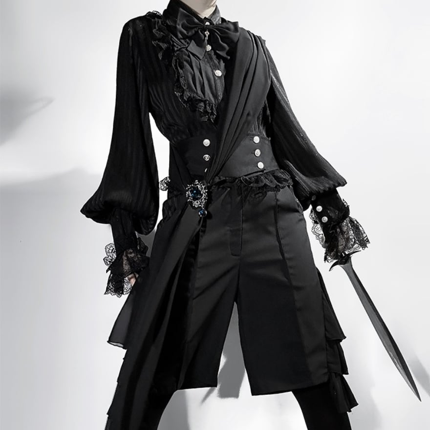 端正なシルエットと、細部にわたる装飾が、物語のような世界観を演出する王子系ゴシックなオールインワン5点セットです