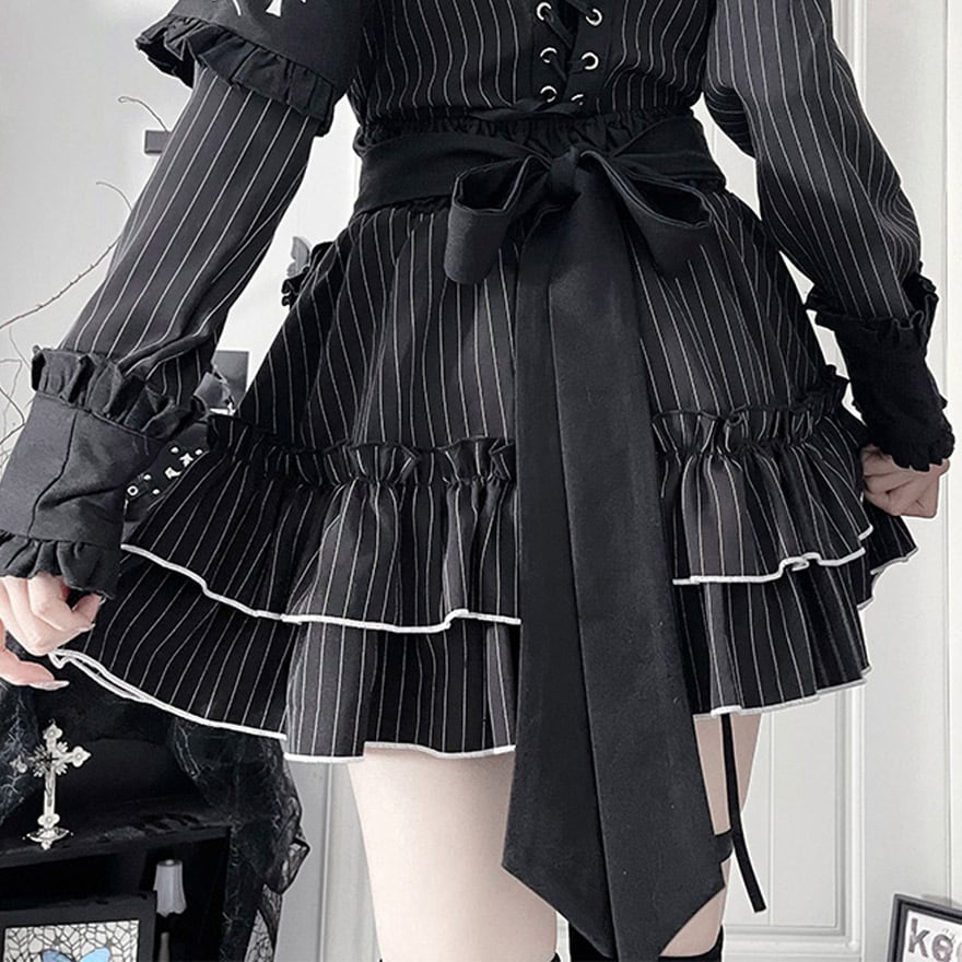 ゴスロリ通販 With U ゴスロリ系 地雷 スカート ミニ丈 ストライプ柄 メイド風 ライブ ストリートファッション