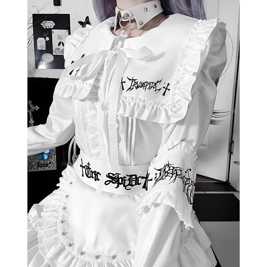 お手持ちのトップスと合わせるだけで、一気にゴシックなメイド風スタイルが完成します。