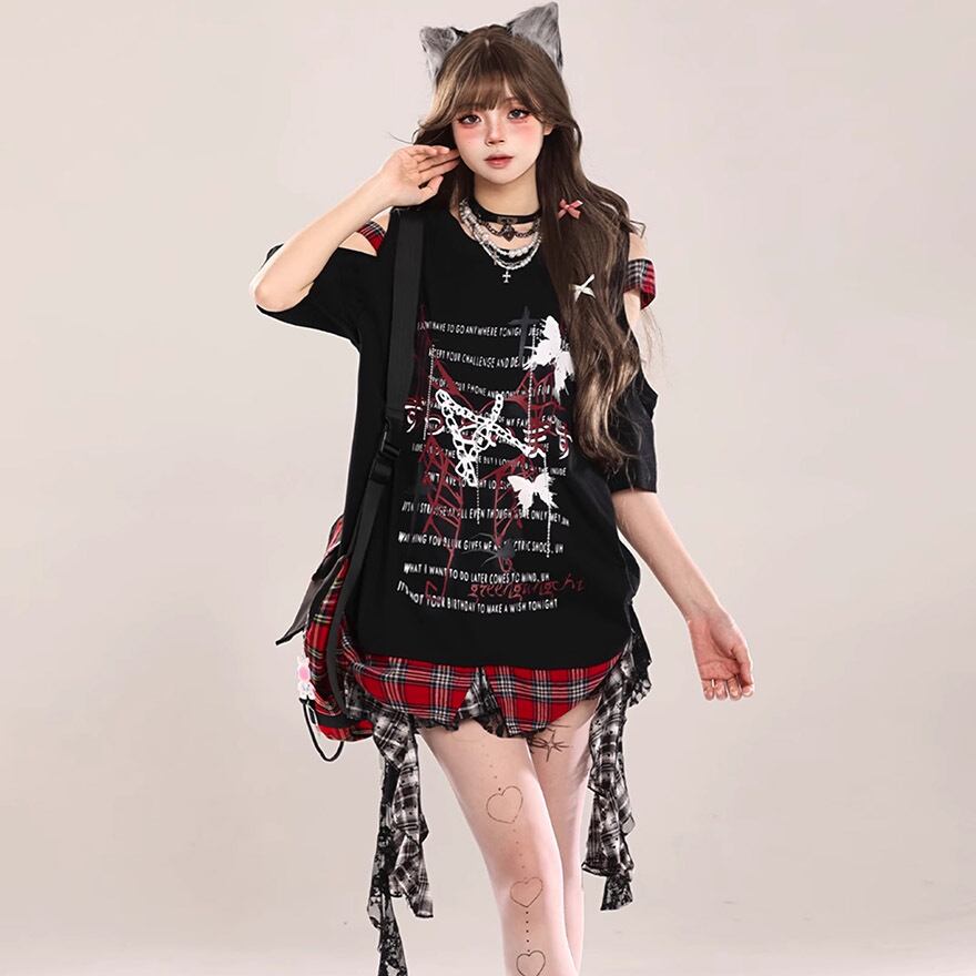 ゴスロリ通販 With U ゴスロリ系 地雷 Tシャツ オフショル ストリートファッション